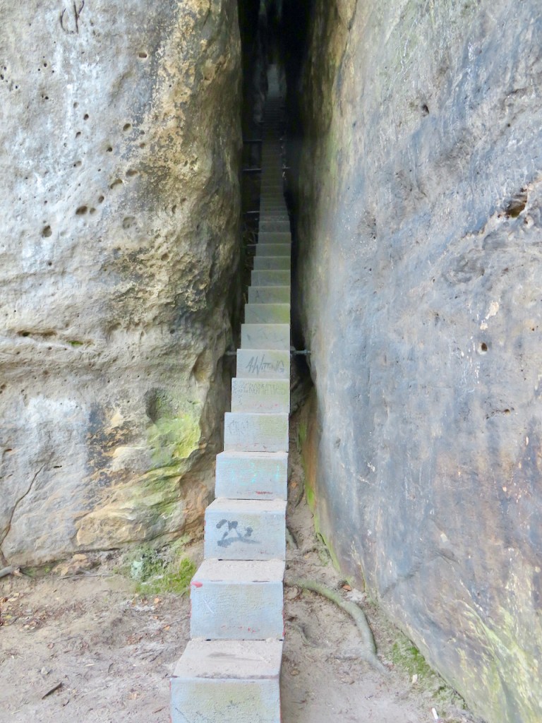 Kallioille olisi voinut kiivetä myös niiden päälle, mutta eivät nämä portaat ja kallionkolot oikein houkutelleet. Kiivetköön nuoremmat.