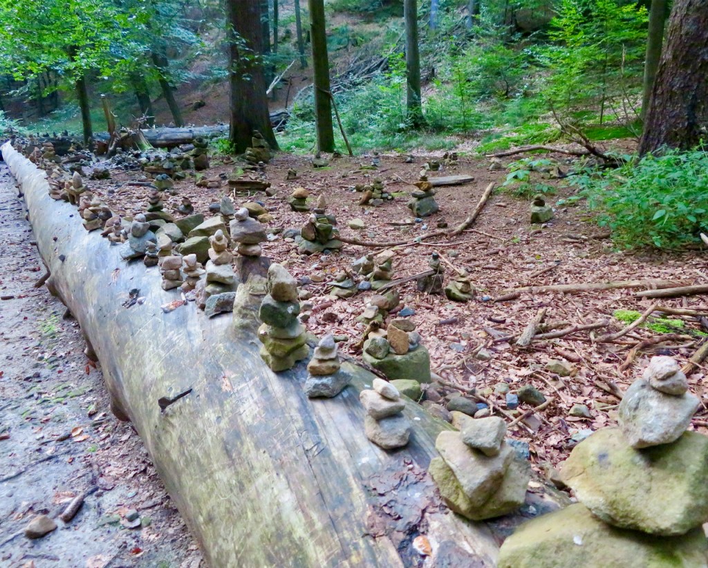 Noin puolivälissä mäkeä oli monissa muissakin paikoissa nähtävillä olevia kivikasoja. Emme ehtineet itse tällaista rakentaa.