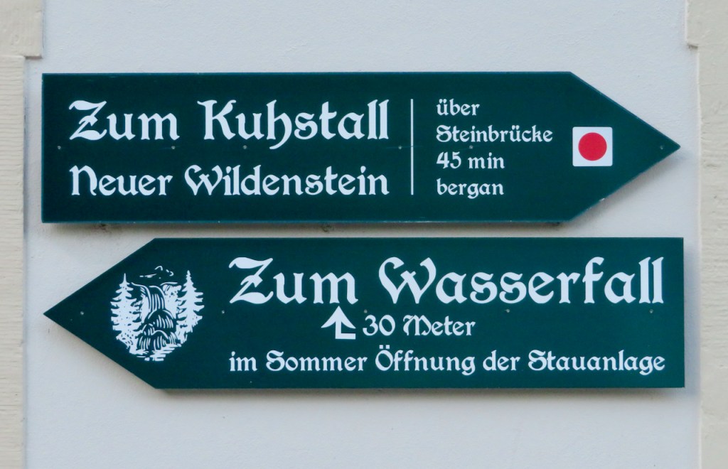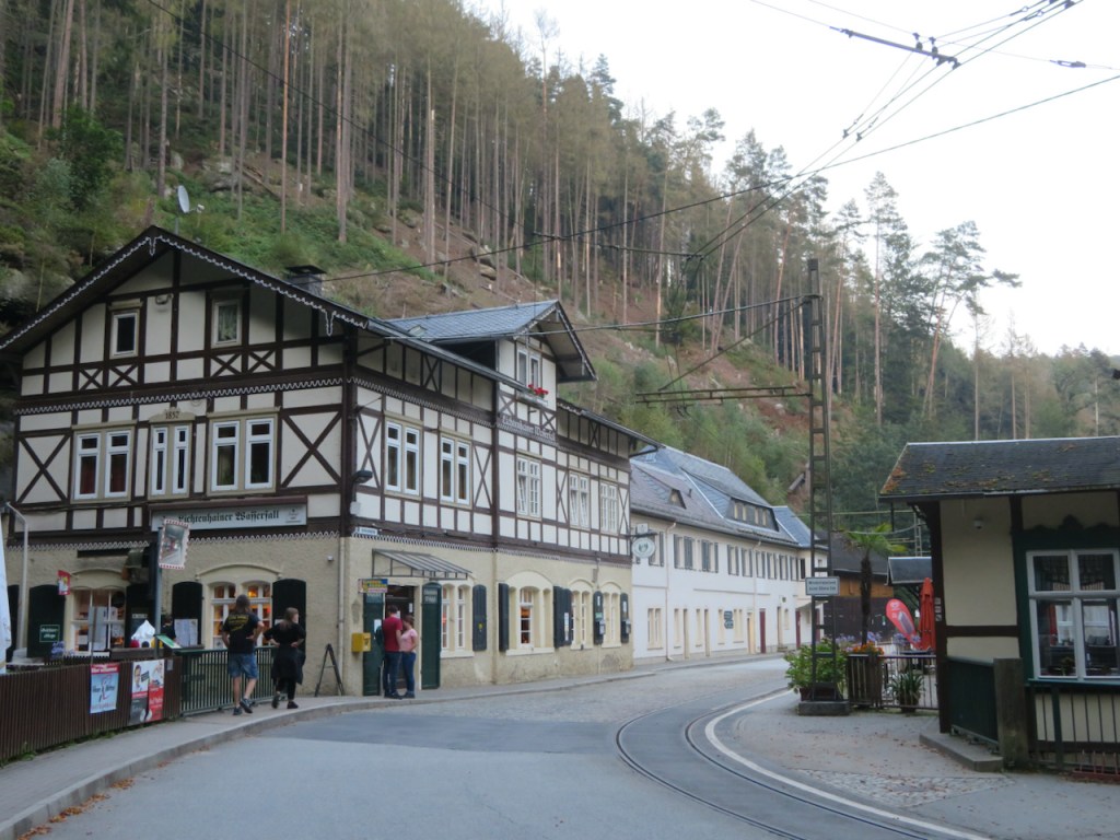 Me tiesimme jo tullessamme, että olisimme menossa Kuhstallin näköalapaikalle. Kello oli jo melko paljon ja tiesimme saman tien, että pitäisi lähteä astelemaan ylöspäin normaalia reippaammin, että ehtisimme alaskin ennen pimeää. Siispä vauhdilla ylämäkeen.