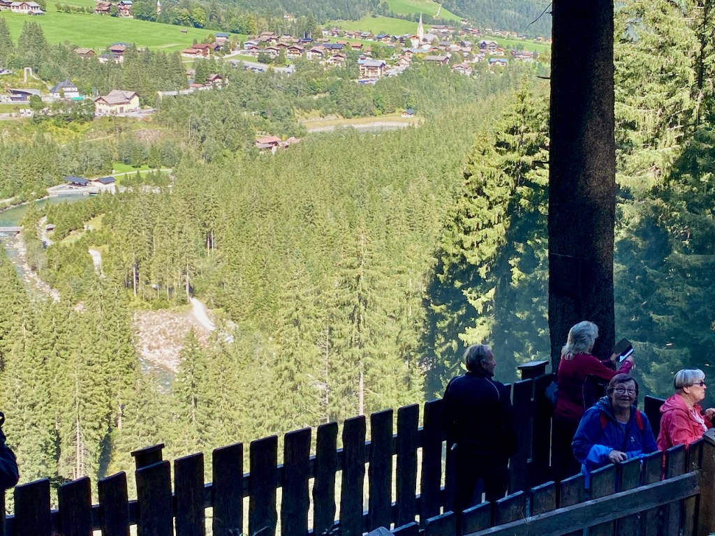 Polun varrella oli vähän väliä näköalatasanteita, joille voi poiketa katsomaan putouksia lähempää ja ottamaan kuvia. Niiltä oli hienoja näkymiä myös alas kylään ja Salzach joelle, joka alkaa täältä.