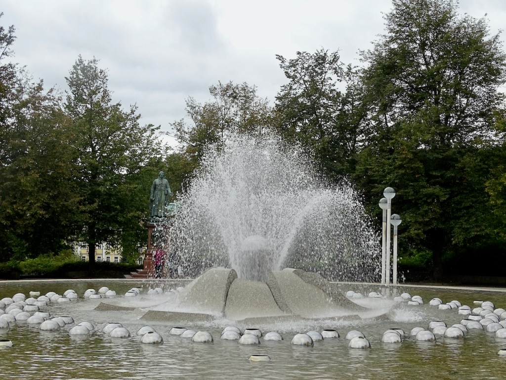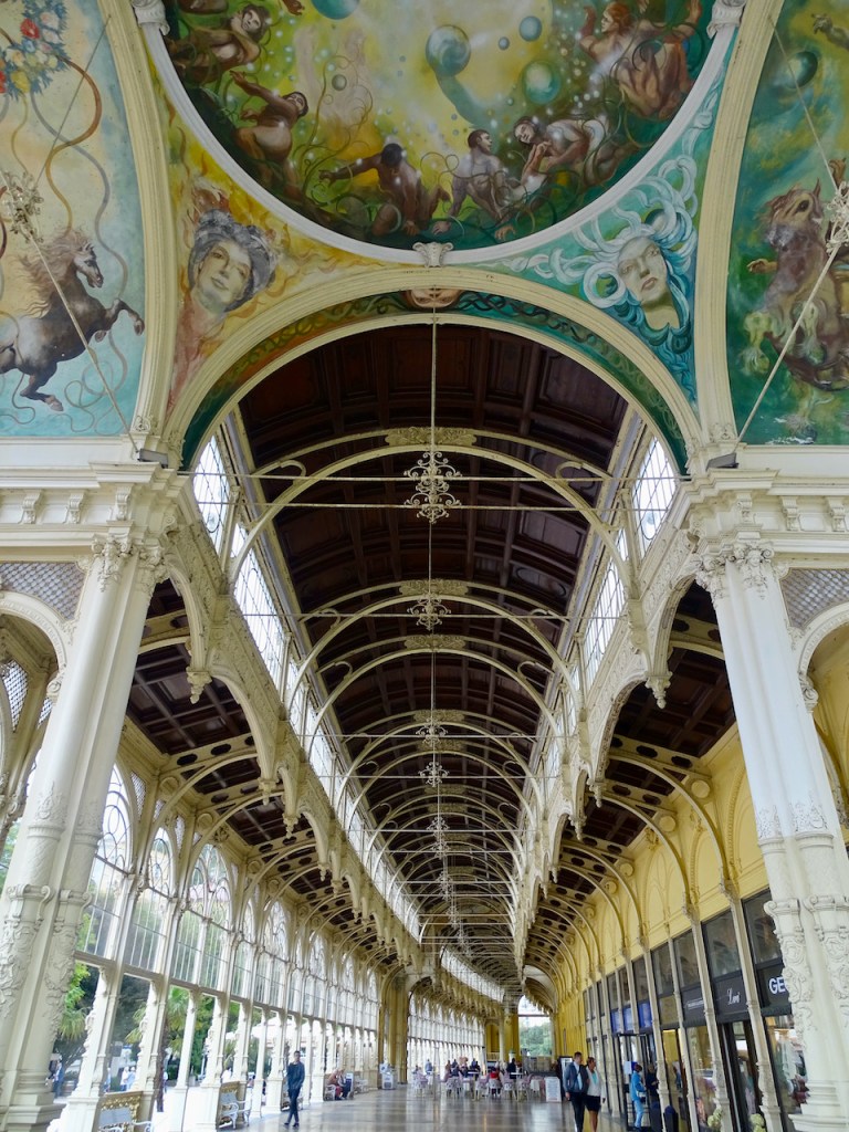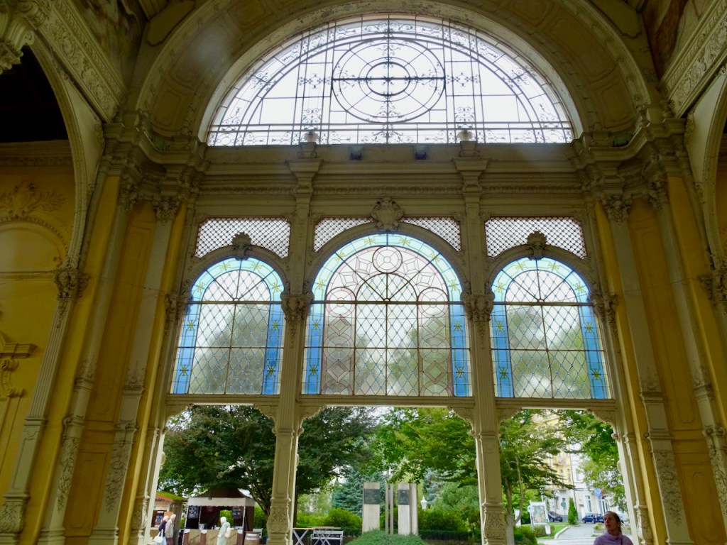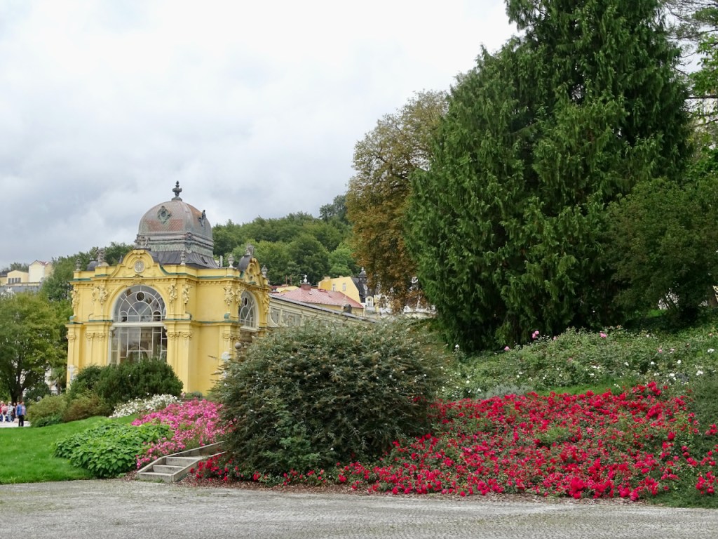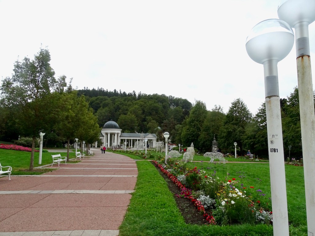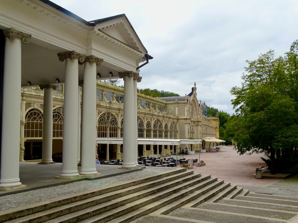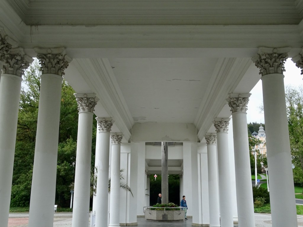 Mariánské Láznessa on kolme ihanuutta, jotka saivat meidät pysähtymään siellä pariksi tunniksi. Paras on pylväikkökylpylä ja erityisesti juuri se mahtava pylväikkö. Laulava suihkulähde ja muuten vain hienot puistonäkymät ja kauniit talot ovat myös huikeita. Kaikki ovat nähtävissä yhdessä paikassa, joten syötimme navigaattoriin ohjeeksi Singing Fountain ja löysimme parkkipaikan heti.