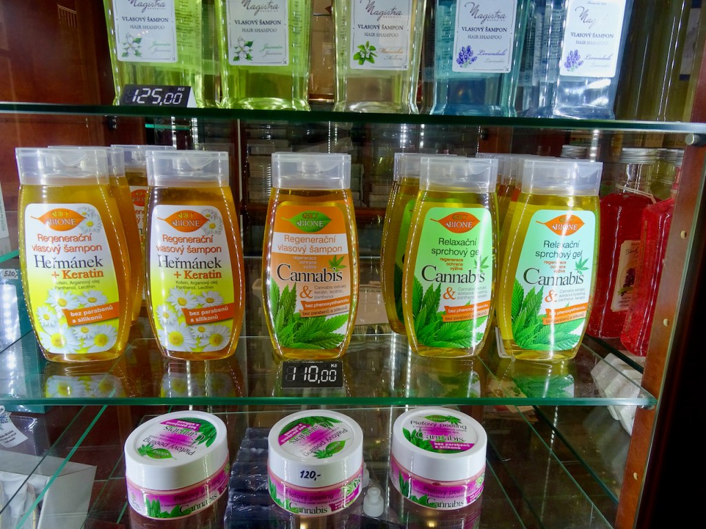 Korttien ja matkamuistoesineiden lisäksi paikassa oli myytävänä erilaisia terveystuotteita, esimerkiksi shampoita ja voiteita. Tämä yllätti. Kannabis terveellistä näinkin?