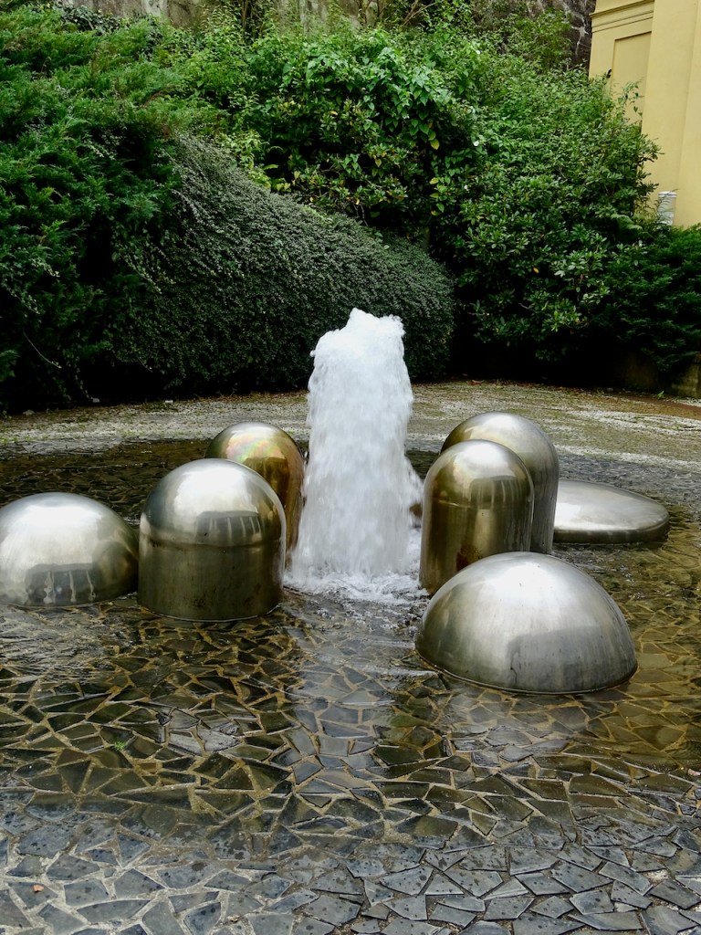 Laulava suihkulähde on pyöreä, läpi ja sen suihkujen muoto ja voimakkuus vaihtelevat koko ajan. Parittomien tasatuntien aikaan se myös esittää musiikkia turistiaikaan toukokuusta lokakuuhun, mutta tällä kertaa ei meidän pysähdyksemme sattunut tasatunneille, joten kuulematta jäi. Illalla musiikkiin liittyvät myös valot.