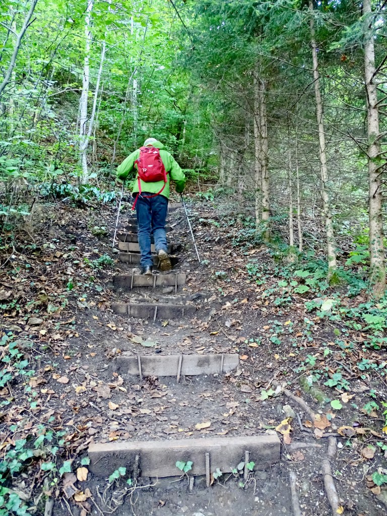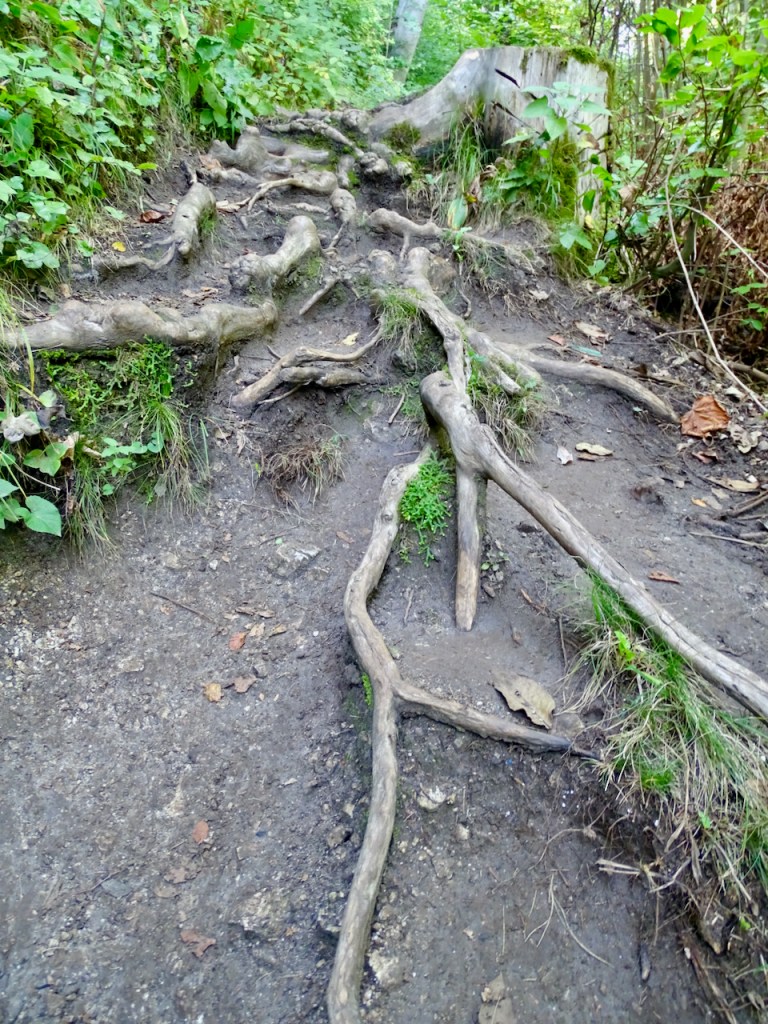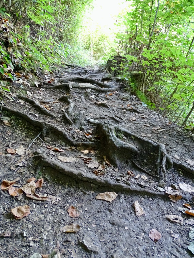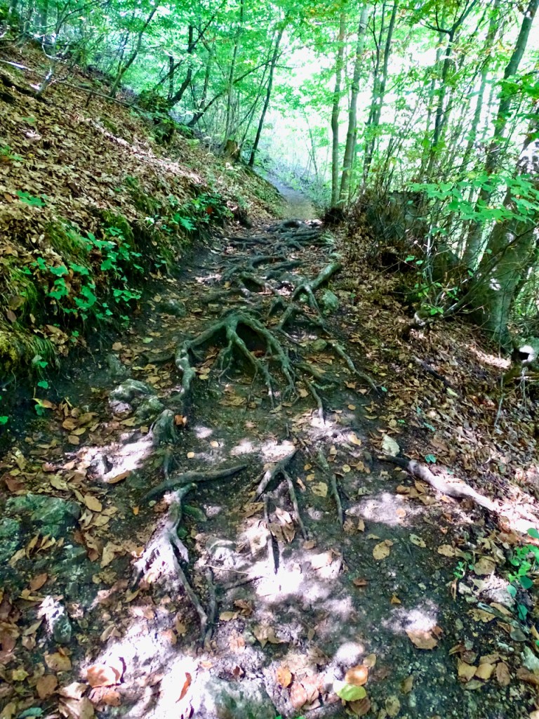 Sinne olimme siis aamulla ensimmäiseksi suunnanneet . Eipä ollut ihan sellainen polku, jonka luulimme suunnitelleemme, mutta kun ei ole kiirettä mihinkään, jokaisen juuren ja kiven voi sovittaa askeleisiinsa yhden kerrallaan. Juhan sauvoista oli kyllä iloa myös.