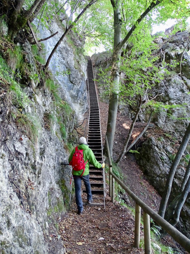 Toinenkin meille sopiva patikkareitti löytyy Bledistä, nimittäin Vintgarin rotko. Sinne pääsee kyllä autollakin, mutta me nousimme kylästä kävellen. Polun varrella oli mukava katsella paikallista maaseutua, jolla heinien kuivatustelineitä oli vähän väliä. Reitti oli selkeästi viitoitettu.