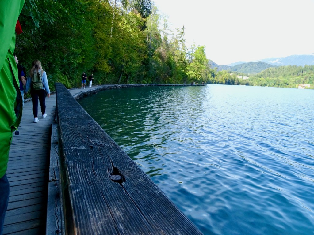Perusjuttu Bledissä on kiertää järvi. Järven ympäri kulkee helppo kävelyreitti, josta suurimman osan voi yhtä hyvin pyöräillä. Välillä kävelyreitti siirtyy lankkupolulle veden rajaan ja silloin tietysti pyöräilijä jää ajoväylälle. Kuuden kilometrin reitti sopii kävelyyn erittäin hyvin, koska joka tapauksessa koko ajan tekee mieli pysähdellä nauttimaan maisemista ja kirkkaasta osin turkoosista järvestä tai ottamaan kuvia. Uimarantaakin löytyy.