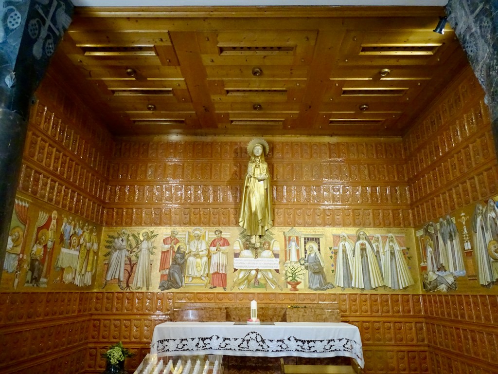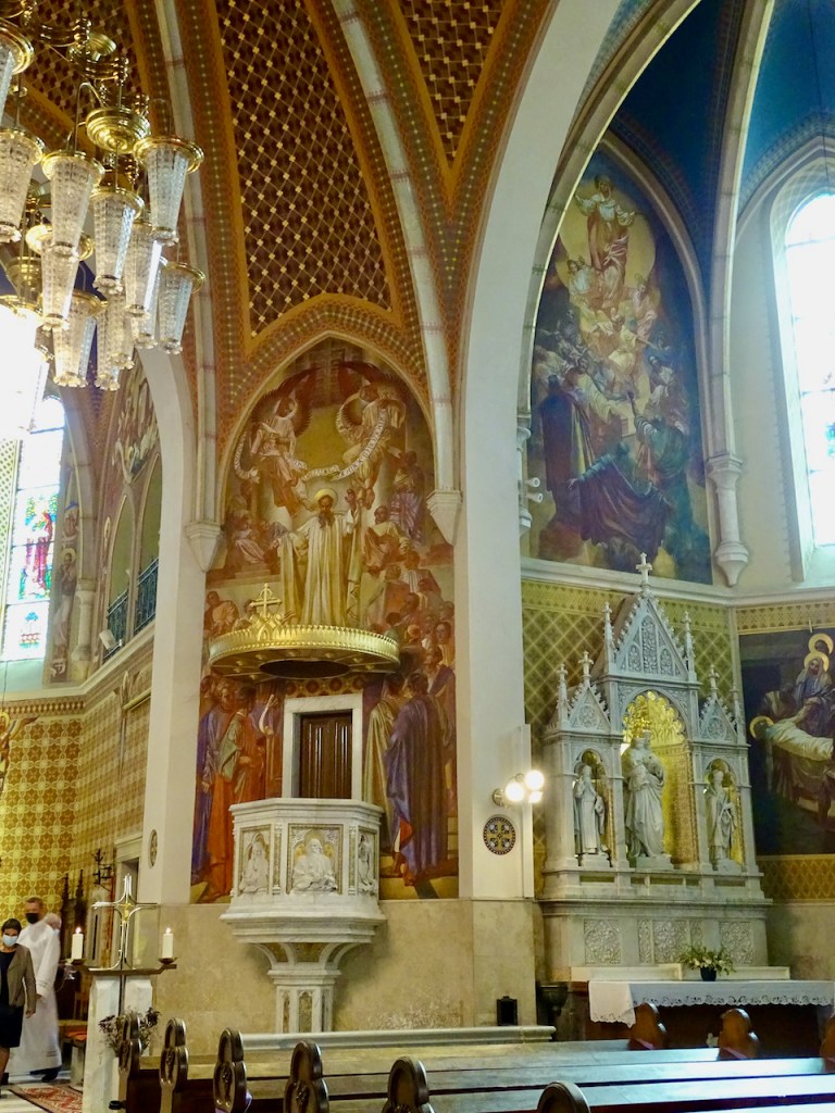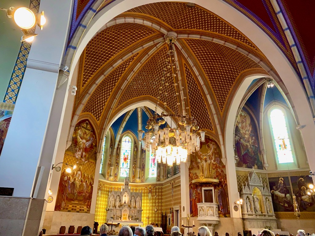 Pari päivää retkeilykäyntimme jälkeen oli sunnuntai ja tulimme takaisin osallistuaksemme katoliseen messuun linnan lähellä olevassa kirkossa. Oli upea kirkko tämäkin, kannatti ehdottomasti käydä, vaikka tällä kertaa olimme tilaisuudessa, jossa emme ymmärtäneet muuta kuin viisi sanaa: Jeesus, Kristus, Maria, halleluja ja aamen.