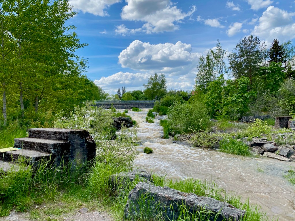 Toisaalta tietynlainen vaatimattomuus oli myös itsestään selvää. Jatkoimme koulun pihalta nytkin juhlimaan ja riemuitsemaan hyvin vaatimattomasti. Eli etsimään mukavaa paikkaa syödä omat eväät pyörän laukusta. Päädyimme Myllyrantaan Patakosken vierelle ja kaivoimme leivät, hedelmät ja kahvitermarit esille.