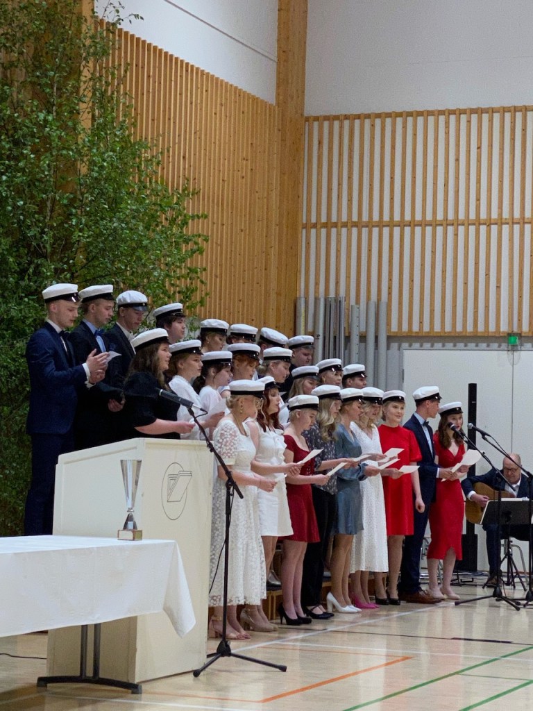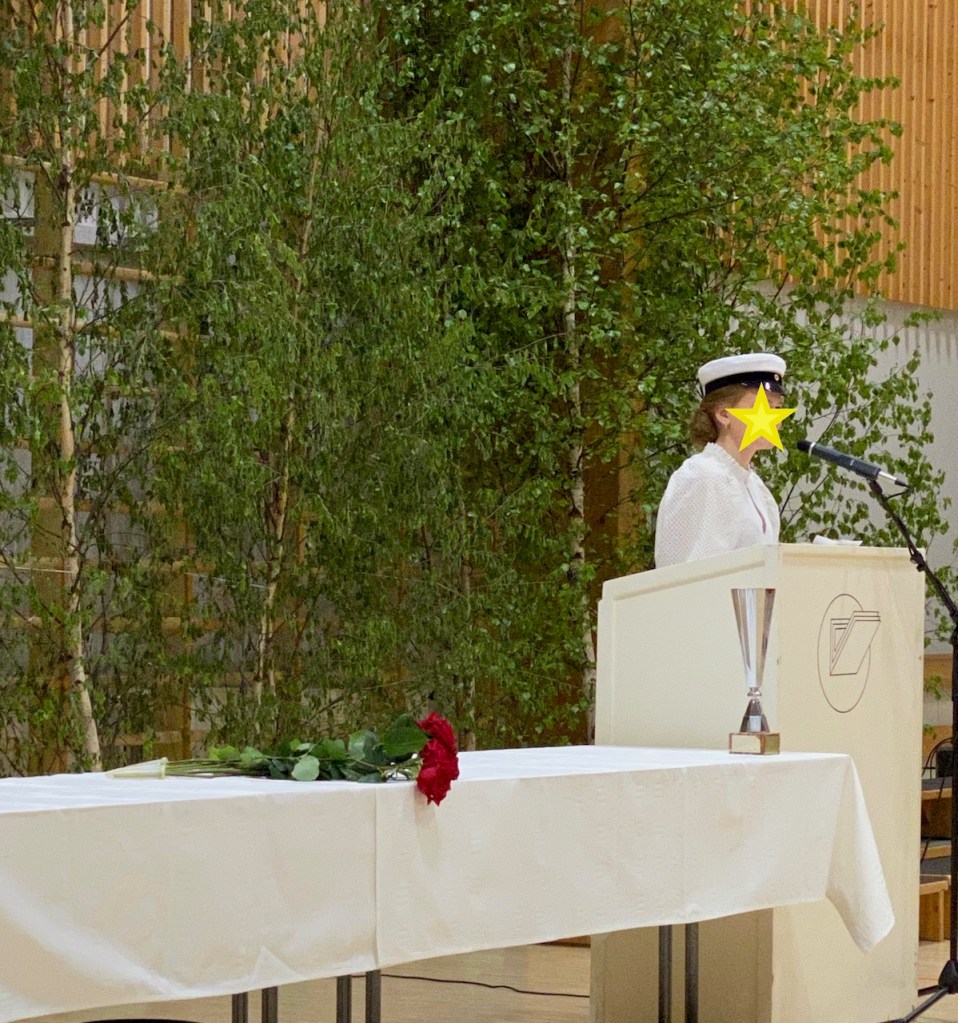 Oma koskettava muisto tuli, kun uusi ylioppilas astui pitämään puheensa. Kysyin kuiskaten vieruskavereiltani, muistivatko he, että minä 51 vuotta sitten pidin vastaavan puheen. Eivät muistaneet. Enkä minäkään muistanut puheen sisällöstä mitään. Jännityksen ja ilon muistin.
