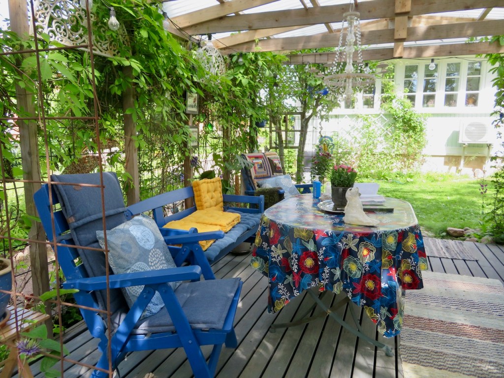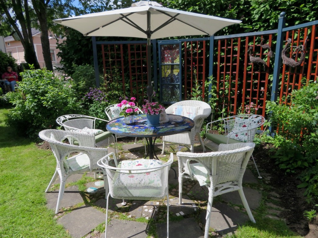 Puutarhoissa oli viihtyisiä pöytäryhmiä ja istumapaikkoja. Oli mukavaa istahtaa välillä ja joillain pihoilla oli tarjolla kahvitkin. Voin hyvin kuvitella, miten nämä puutarhoistaan innostuneet harrastajat istuvat täällä ja nauttivat pihoistaan.