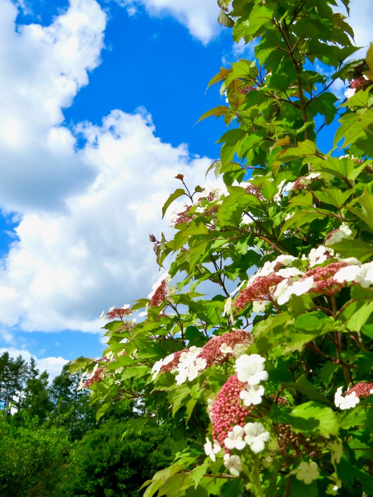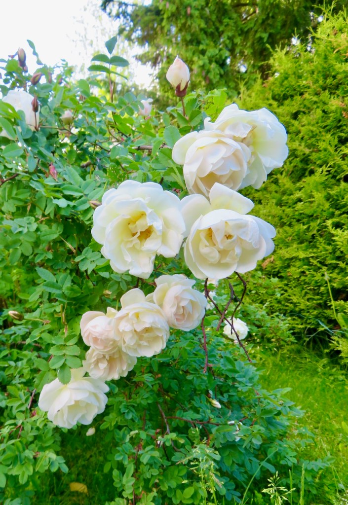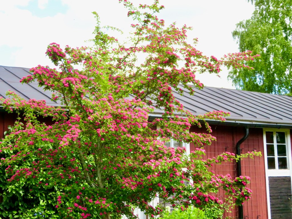Puiden ja pensaiden joukosta meille nousi yksi, jonka hankkimisesta omalle pihallemme aloimme oitis haaveilla, nimittäin Ruusuorapihlaja. Hurmaava puu täynnä pieniä ruusuja. Keskustelimme pihoilla sen hoidosta. Se voi kärsiä kylmästä talvesta. Omalla pihallamme mietimme, voisiko sen pitää matalampana. Pensasmaisena?