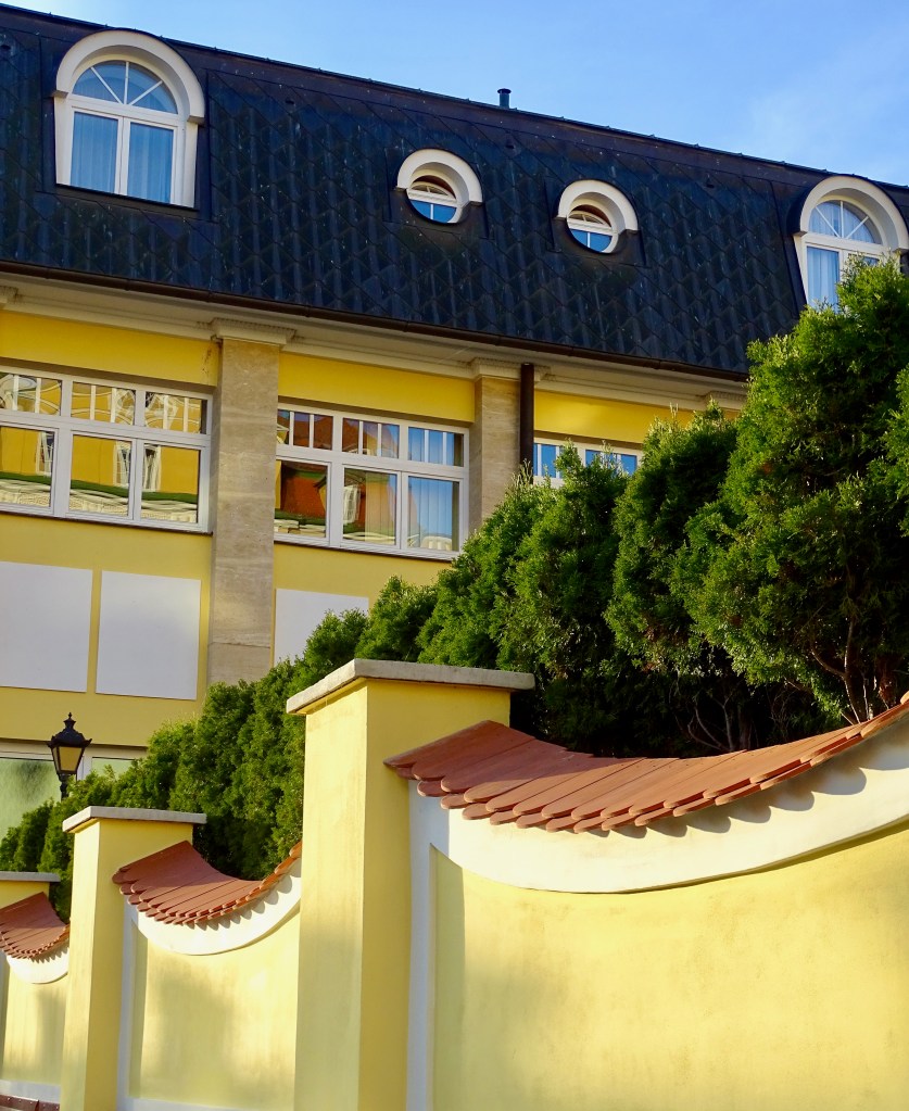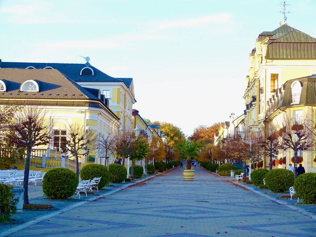 Kaupungin vanhat kylpylärakennukset ja muu koristeellinen arkkitehtuuri on tallella. Varmaan lähes kaikki keskustan talot ovat hotelleja ja kylpylöitä. Me kuitenkin löysimme asuinalueelta keskustan ulkopuolelta oikein mukavan Pension Hela Vidan, jossa meidät toivotettiin tervetulleeksi erityisen ystävällisesti. Huone oli tilava, keittiö käytössä, parkkipaikka vieressä. Ihan se, mitä tarvitsemmekin ja vain 48€.