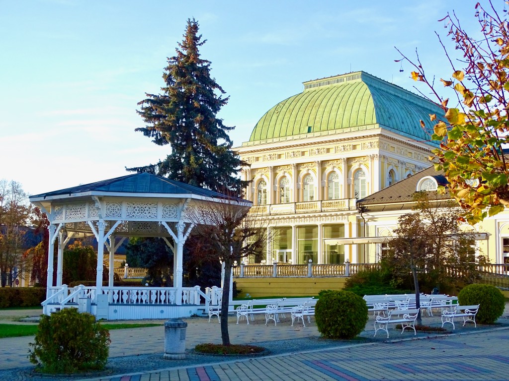 Františkovy Lázně on yksi Tsekin kylpyläkaupungeista, joka on syntynyt 1800-luvun alussa kivennäisvesilähteidensä ympärille. Mariánské Lázně sen lähellä on toinen ja Karlovy Vary oli varakkaitten vapaa-aikaansa viettävien suosikkipaikka jo sitä ennen. Nämä ovat upeita paikkoja. Viime syksynä kävimme Karlovy Varyssa ja Mariánské Lázněssa ja nyt poikkesimme Františkovy Lázněssa ja sen naapurikaupungissa Chebissä.