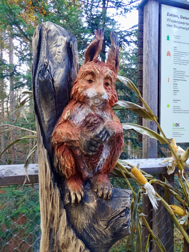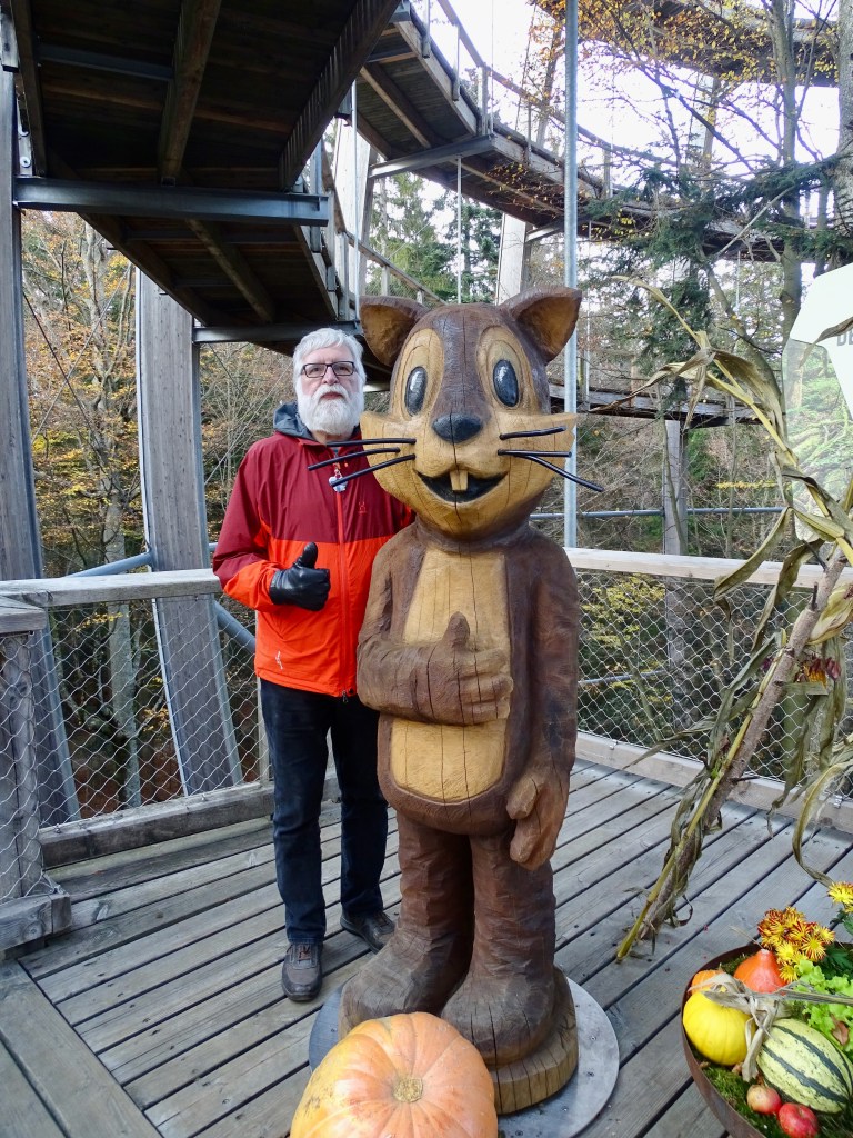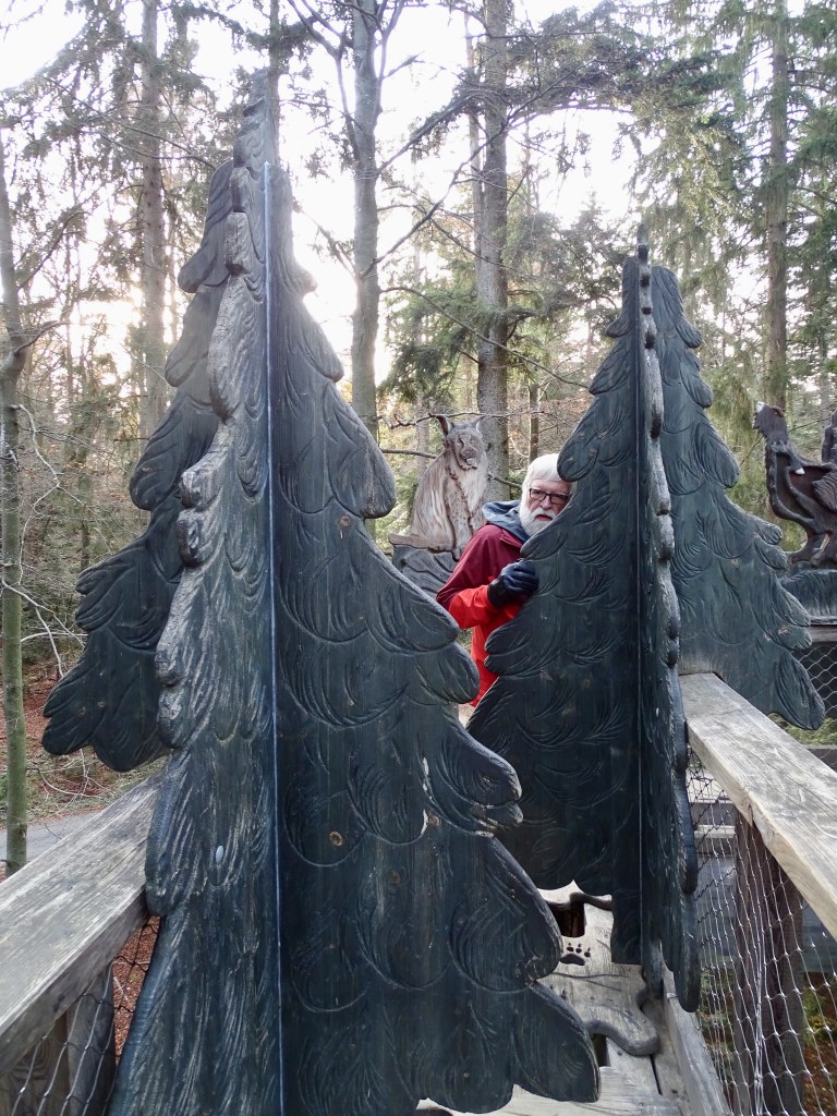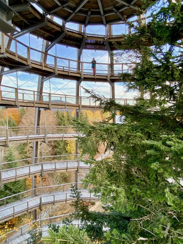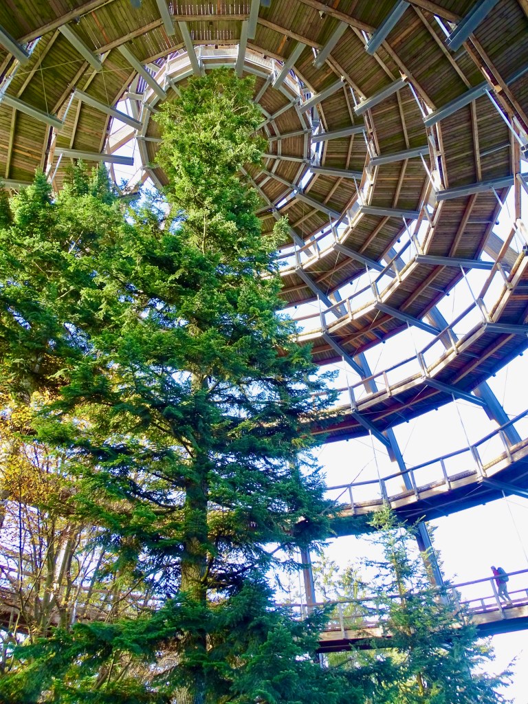 Juu, suunnilleen tuollaisen suomennoksen löysin minäkin latva-/latvustokävelyt. On oikein mukava korkeus katsella ympärilleen ja sitten kun voi vielä kiivetä korkeammalle katsomaan puiden latvojen yli maisemia. Tämä oli meille viides Baumwipfelpfad, yksi Tsekissä (Lipno), yksi Itävallassa (Salzgammergut) ja kolme Saksassa. Niistä ensimmäinen Schwarzwaldissa oli mielestämme hienoin. Bongailemme nämä kyllä edelleenkin, kun reitille sattuvat. Liukumäkiä emme ole mekään testailleet. Nuorison ilohuudoista päätellen ovat heille hauskoja.