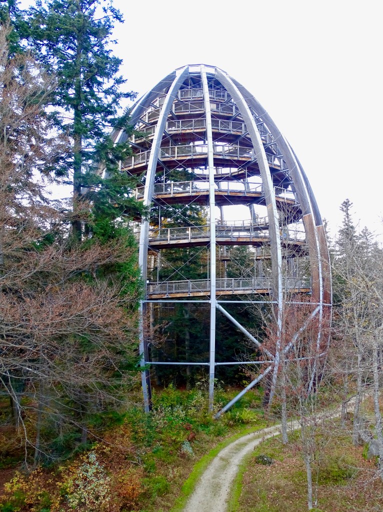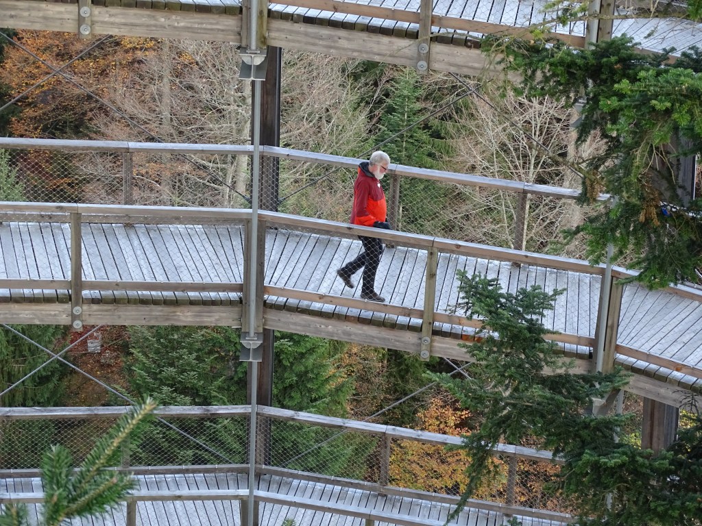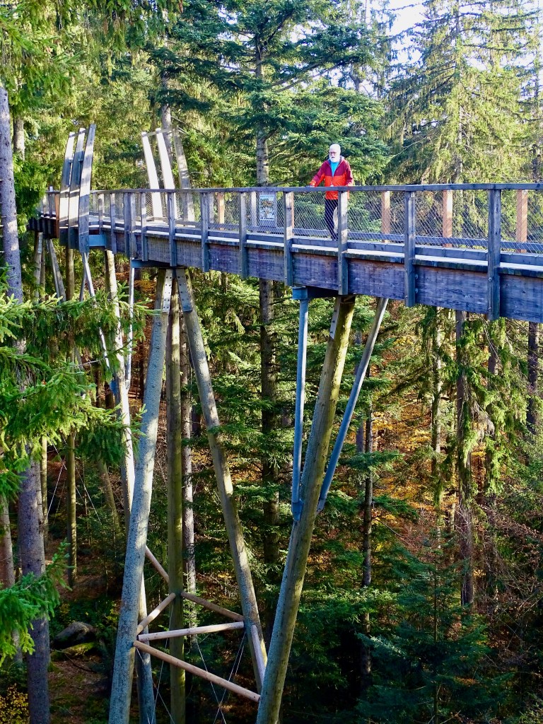 Baumwipfelpfadit ovat kivoja kiipeily- ja lenkkeilykohteita. Helppoja ja hauskoja ja palkitsevat hienoilla maisemilla. Niin tänäänkin. Baumwipfelpfad Bayerische Wald Neuschönaussa Baijerin kansallispuistossa oli tänään tällainen.