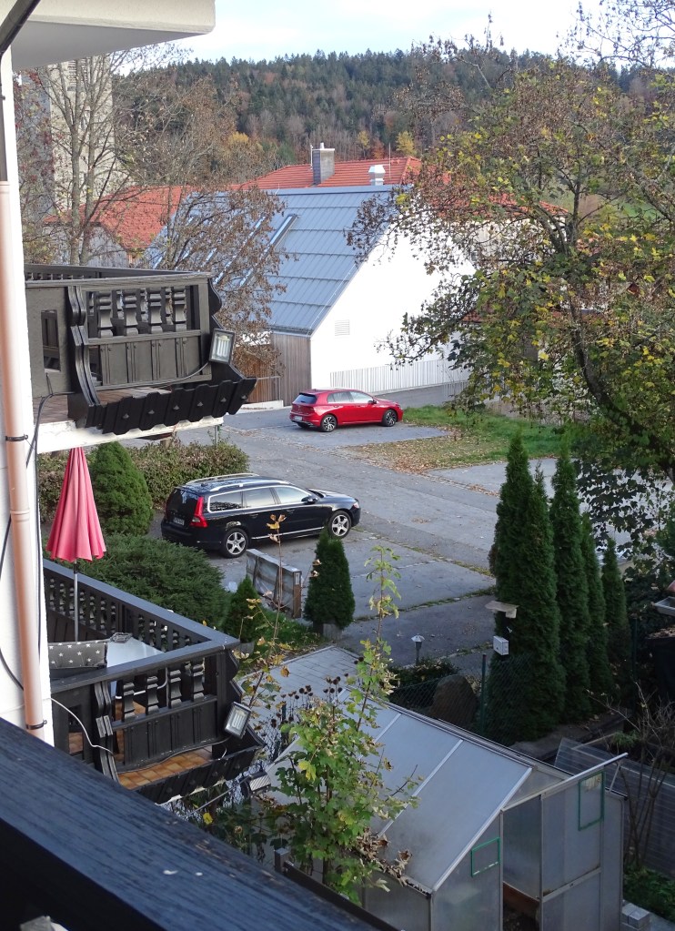 Päivän lenkkeilyvirkistys oli takana. Matkaa oli tehty noin 250km, pysähdytty kahville hienoissa maisemissa ja ilta sujuu siistissä hotellihuoneessa Vitalescan hotellissa. Aamupalan nautimme omalla parvekkeella, auto odottaa tuolla ikkunan alla.