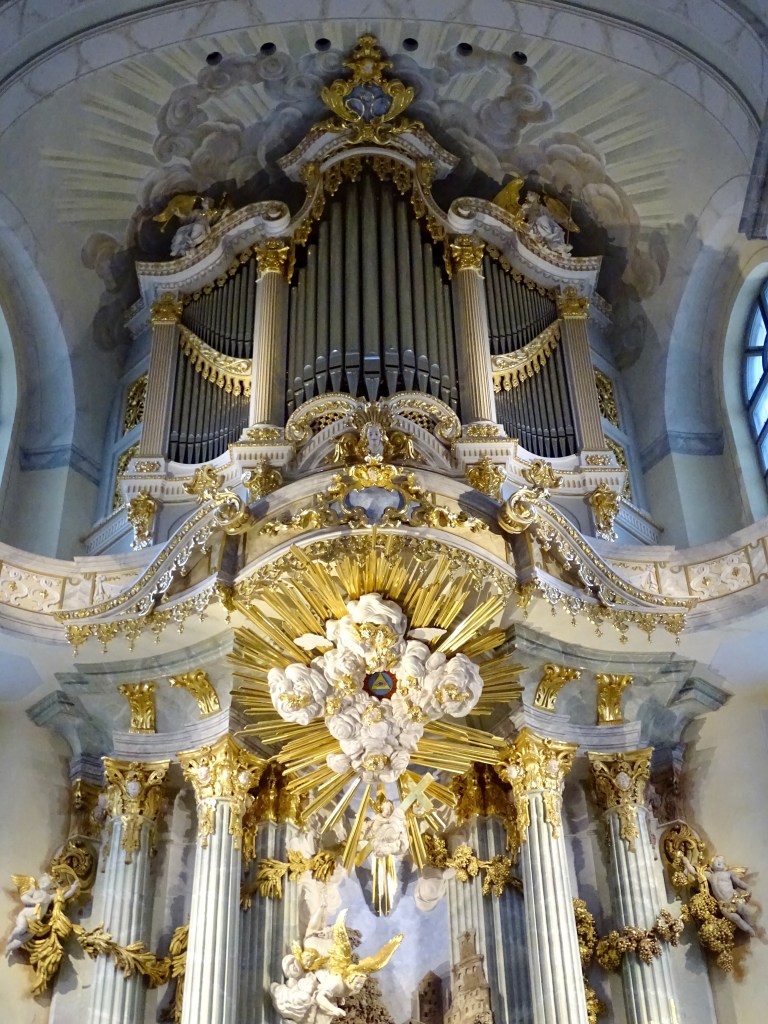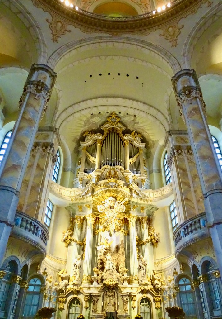 Yksi Dresdenin huippunähtävyyksistä on Frauenkirche 1700-luvulta, joka on remontoitu ennalleen maailmansodan jälkeen. Viimeksi täällä käydessämme oli esillä vielä rakennustelineitä, mutta nyt tilanne oli hieno.