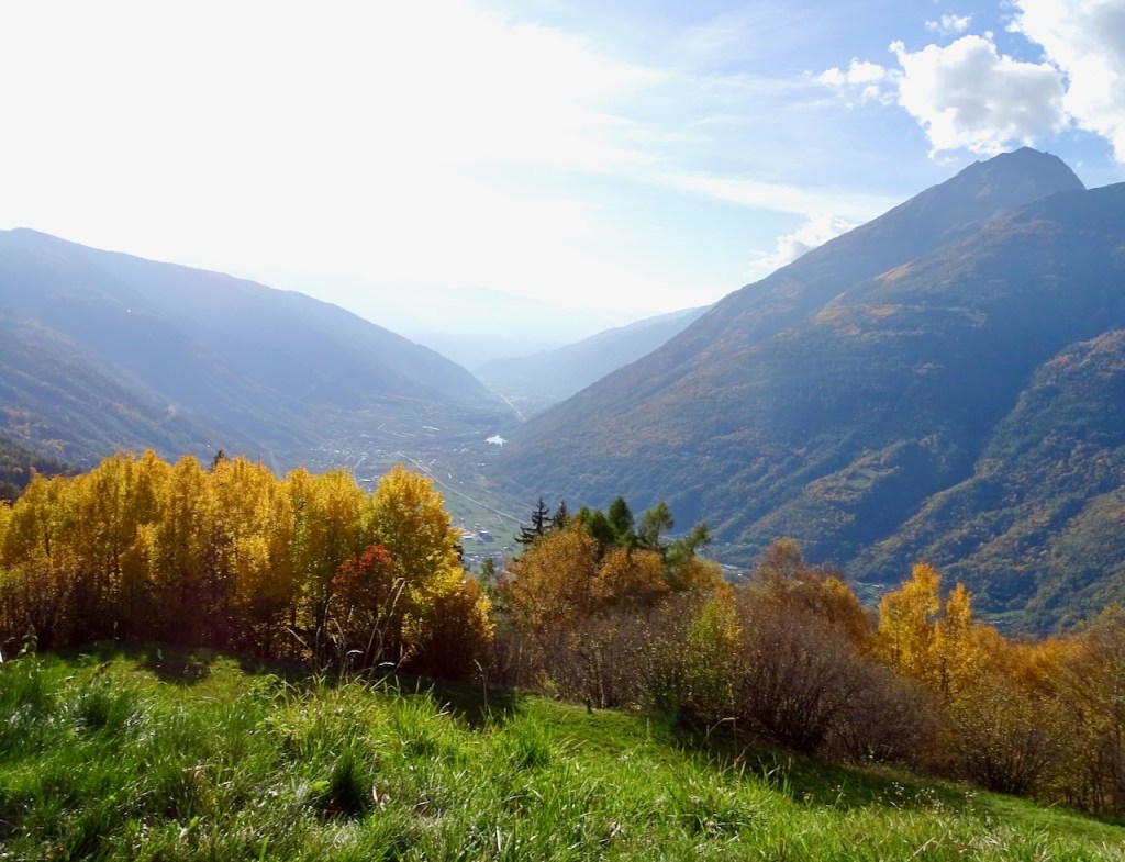 Mutta maisemat palkitsivat taas. Koko ajan mentiin huikeasti ylöspäin ja ruska rinteillä lisääntyi koko ajan. Pysähdyspaikkoja ei juuri ollut, mutta jostain puiden välistä näkyi jopa alas laakson kyliin.