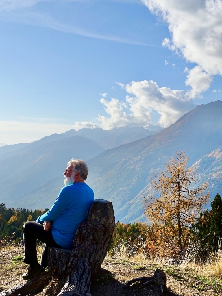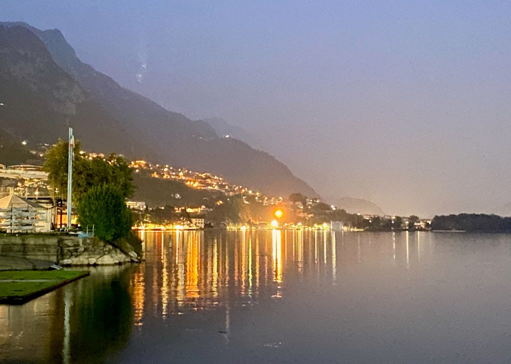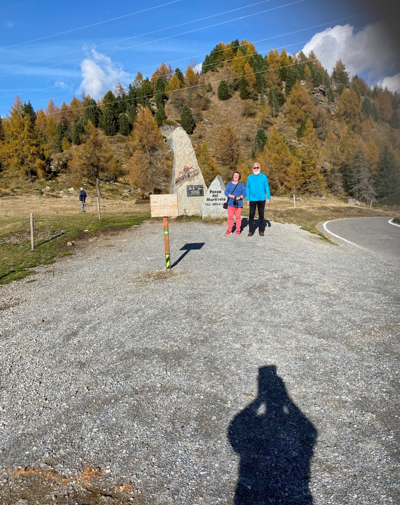 Pyysimme yhtä miestä ottamaan meistä kuvan selfiepaikalla. Hän halusi ottaa myös toisen ja paneutui asiaan todella. Otti sellaisen kuvan, jossa näkyy sekä Italiaa että Sveitsiä ja kertoi itse eläneensä lapsuutensa Sveitsissä. Sveitsin saksasta huolimatta pystyimme hetken keskustelemaan ja häntä kiinnosti, miksi suomalaispariskunta on täällä. Tällaiset kohtaamiset ovat hauskoja. Ojensimme hänelle Fazerin suklaalevyn lähtiessämme.