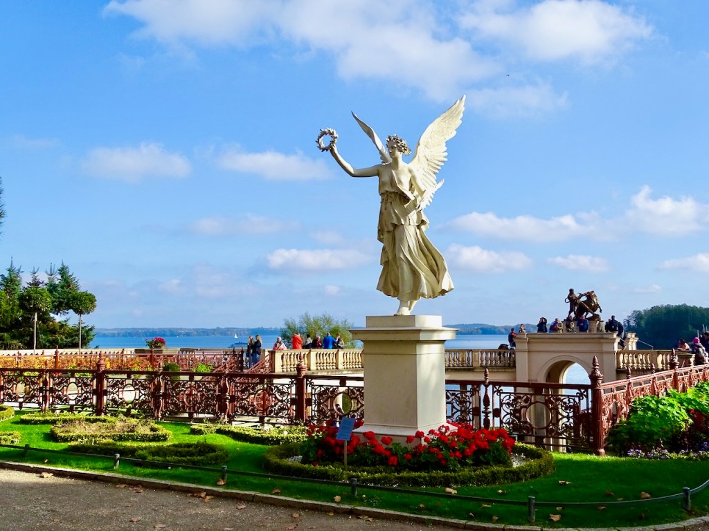Tarkoituksemme oli ollut pysähtyä vain ihailemaan Schwerinin linnaa, mutta kaupunki viehätti niin paljon muutenkin, että meni ainakin tunti, ennen kuin linna tuli näköpiiriimme. Linnassa oli vieläkin menossa remontti, joten se ei ollut kaikilta osin auki ja niin mekin kiertelimme vain linnan puutarhaa ja katselimme linnaa ulkoa joka suunnasta. On kyllä ehdottoman kaunis linna kauniilla paikalla ja kauniin puutarhan ja järven ympäröimänä.