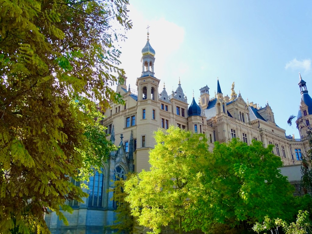 Pysähdyimme pariksi tunniksi Schweriniin ajaessamme Lyypekistä Berliiniin. Keskustan kaduilla on kivoja näkymiä ja komea katedraali. Kaikkein hienoin ja tärkein asia Schwerinissä on kuitenkin Schwerinin upea linna, jonka innoittamana tämän pysähdyksen teimme ja suosittelemme muillekin. Lempinimi ”Pohjoisen Neuschwanstein” kuulosti erittäin sopivalta tälle Unescon maailmanperintökohteelle.