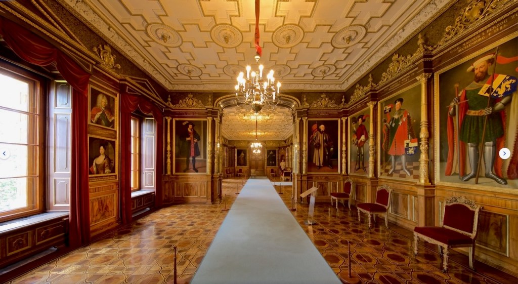 Osa linnan järvenpuoleisen siiven sisätiloista tuhoutui tulipalossa 1913 ja monet alueet sisällä on avattu museoksi. Juuri nyt kaikki ei siis kuitenkaan ollut auki, joten jätimme tutustumisen ensi kertaan. Jo tämä yksi linnan omilta sivuilta lainattu kuva kertoo, että sisällä kannattaa vielä käydä.