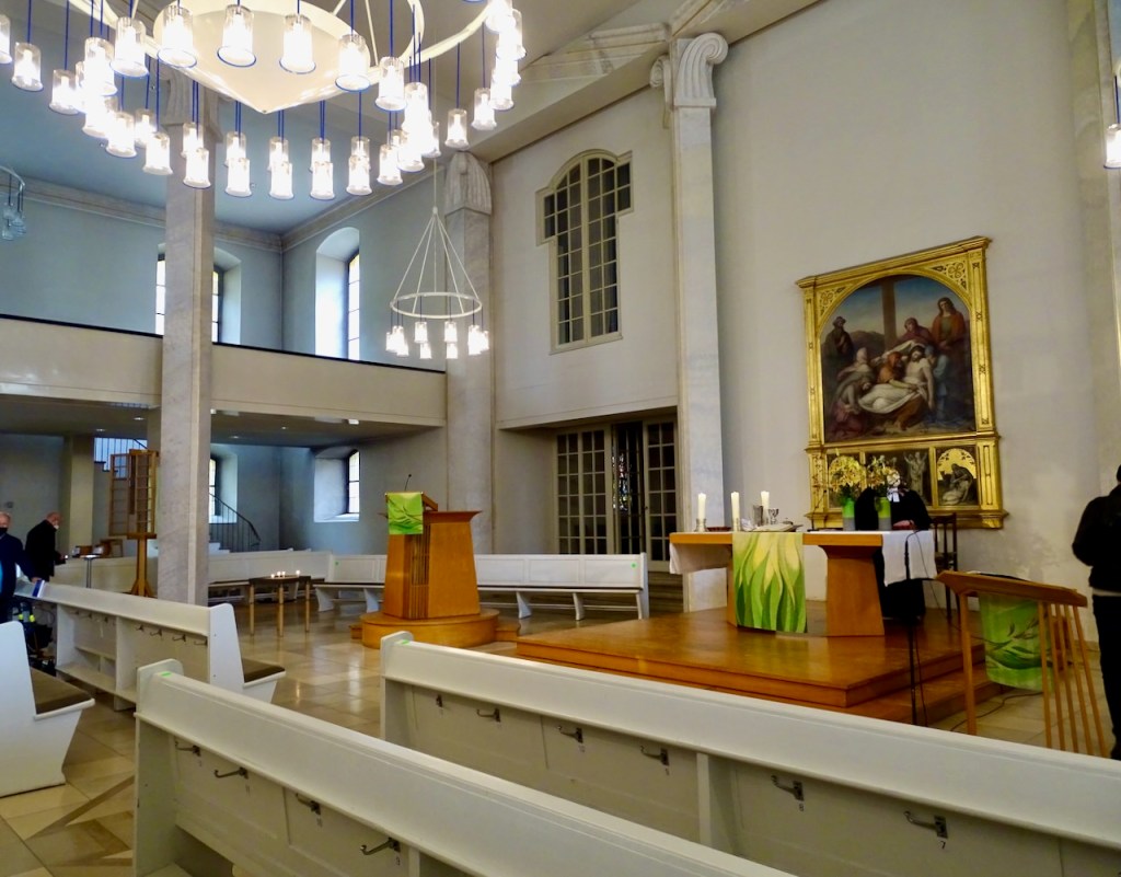 Näitä ilman jäimme nyt. Oliko tässä yksi säästökohde? Vai oliko kirkossa jotain sellaista menossa, että sen valaiseminen ei ollut ongelmatonta? Tältä kirkko näytti nyt.