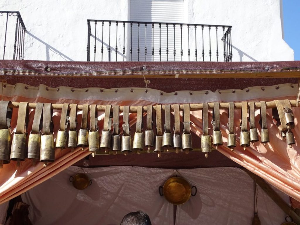 Toloxin ja Sierra de Las Nievesin vaeltelut siis eivät tällä kertaa olleet retkemme sisältö, tulimme paikalle ihmettelemään paikallista menoa ja näkemään tämän kylän juhlintaa tärkeänä viikonloppuna. Monenlaista lehmänkelloa oli useammassakin kojussa.
