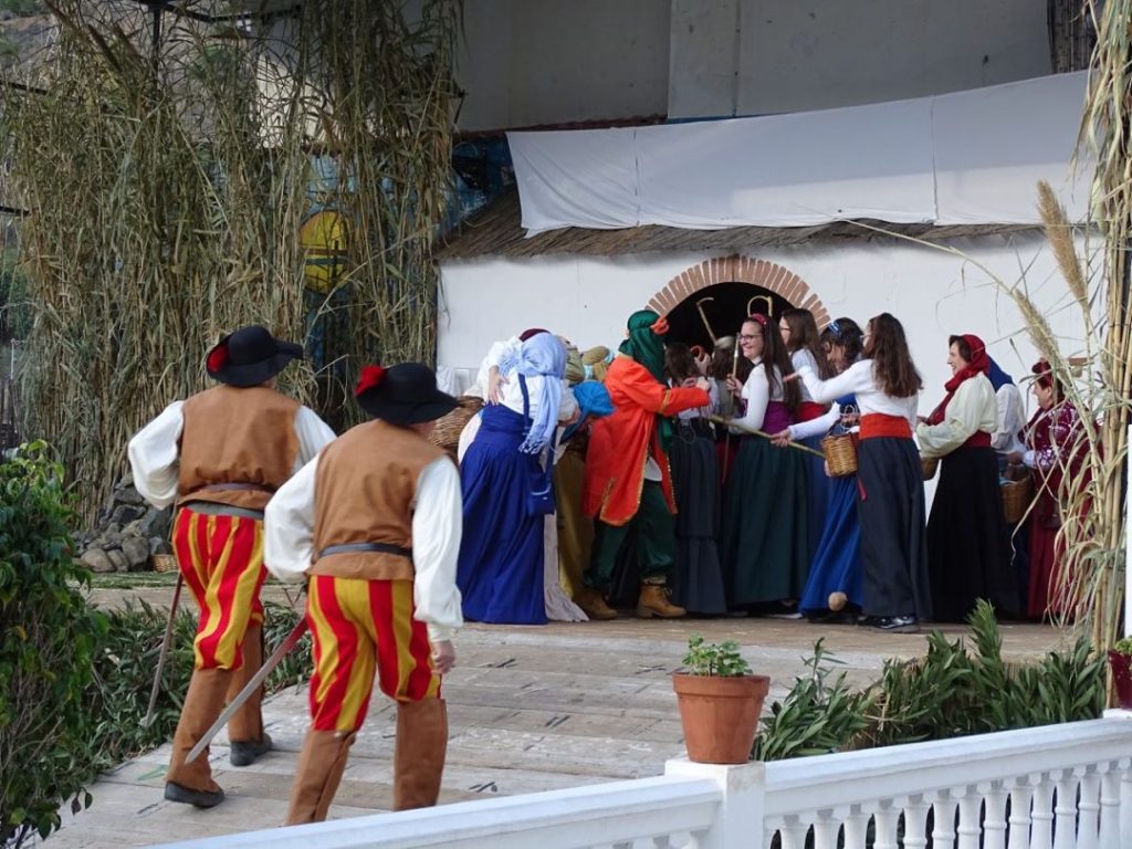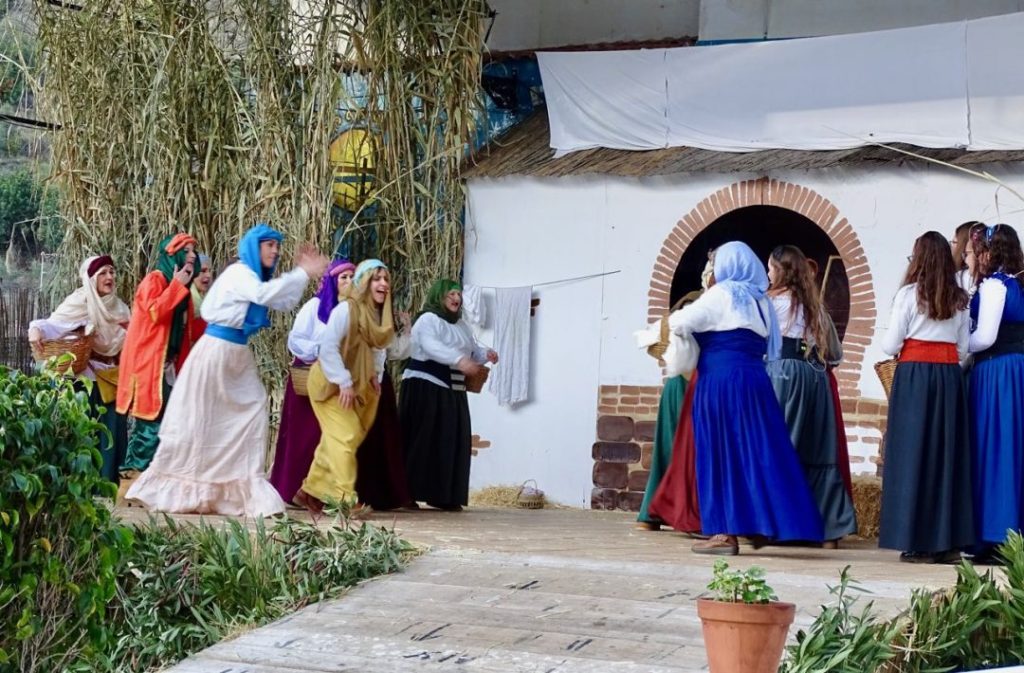 Tykkään kovasti näistä fiestoista, jotka Andalusian kylissä perustuvat joihinkin historian traditioihin. Näitä on laaja valikoima. Ihan vain esimerkkeinä kaksi, joissa olemme viimeksi käyneet: Riogordon pääsiäisnäytelmä, joka vetää tuhansia katsojia ja jossa 400 kyläläistä näyttelee vuosittain pääsiäisviikon kertomuksen ja ihan toisenlainen: Fiesta de Zanahorias eli porkkanajuhla, jossa nautitaan paikallisia tuotteita ja kuullaan paikallista kevyttä musiikkia. Ja kaikkea tältä väliltä. Mantelinkukkia, flamenkoa, kastanjoita – kaikkea täällä juhlitaan.