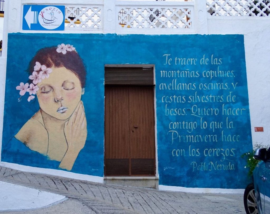 Tähän muraaliin on kirjoitettu loppu yhdestä Pablo Nerudan rakkausrunosta:
