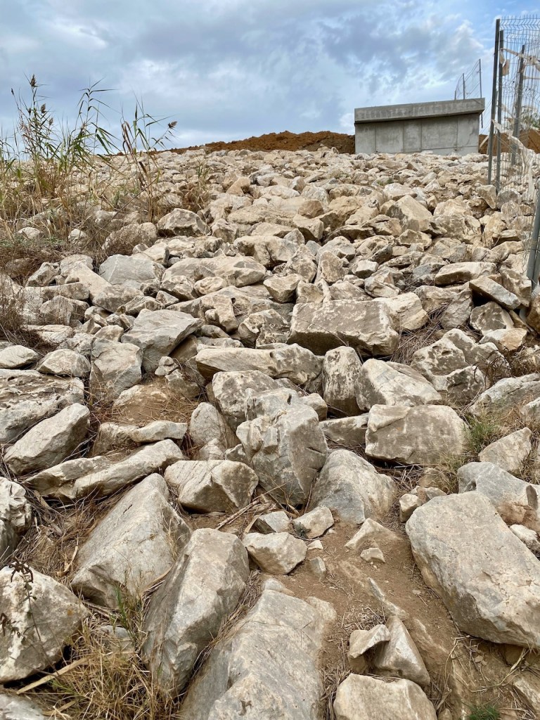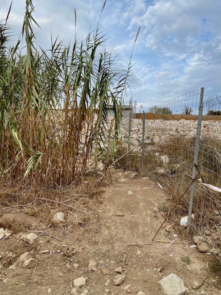 Liian aikaista oli iloita. ”Tie” päättyi aitaan ja aidan vieressä olevaan kivikkoon. Eikä ollut muuta mahdollisuutta, kuin nousta tuonne ylös kivikon yli.