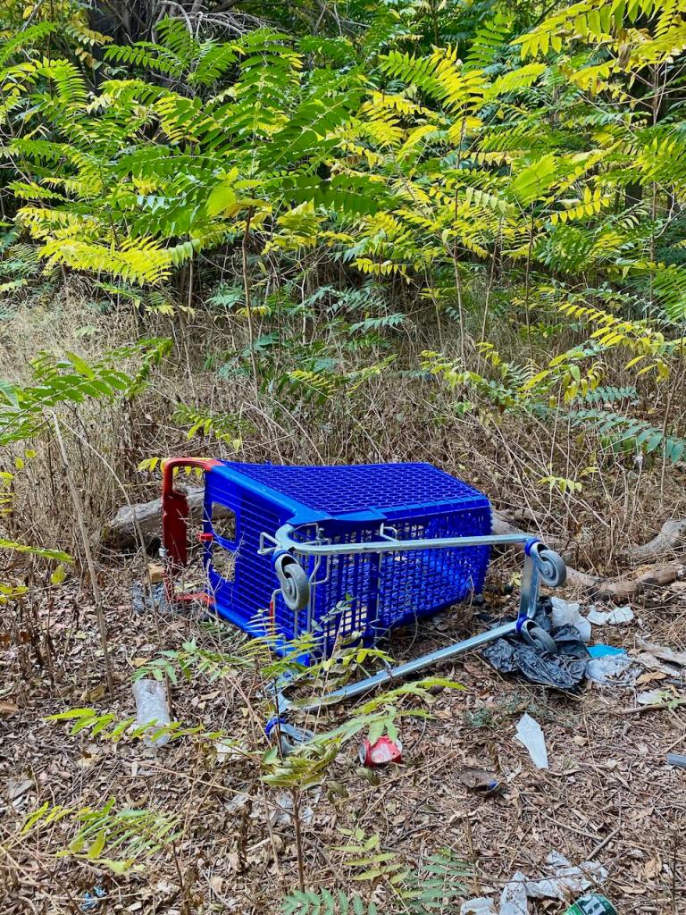 Tiesimme joen olevan meistä oikealla, mutta sinne suuntaan ei näkynyt mitään reittiä, kunnes Google Mapsin ohjeissa tulikin: ”Käänny oikeaan.” Sieltä tuli vastaan juuri silloin pyöräilevä nuori mies, joten kuvittelimme pääsevämme rannan suuntaan. Mutta ei reitti ainakaan nautittavammaksi tullut. Puskaa, roskaa ja lopulta joku rähjäinen maja, jossa ehkä joku jopa majaili, kun narulla oli pyykkiä.