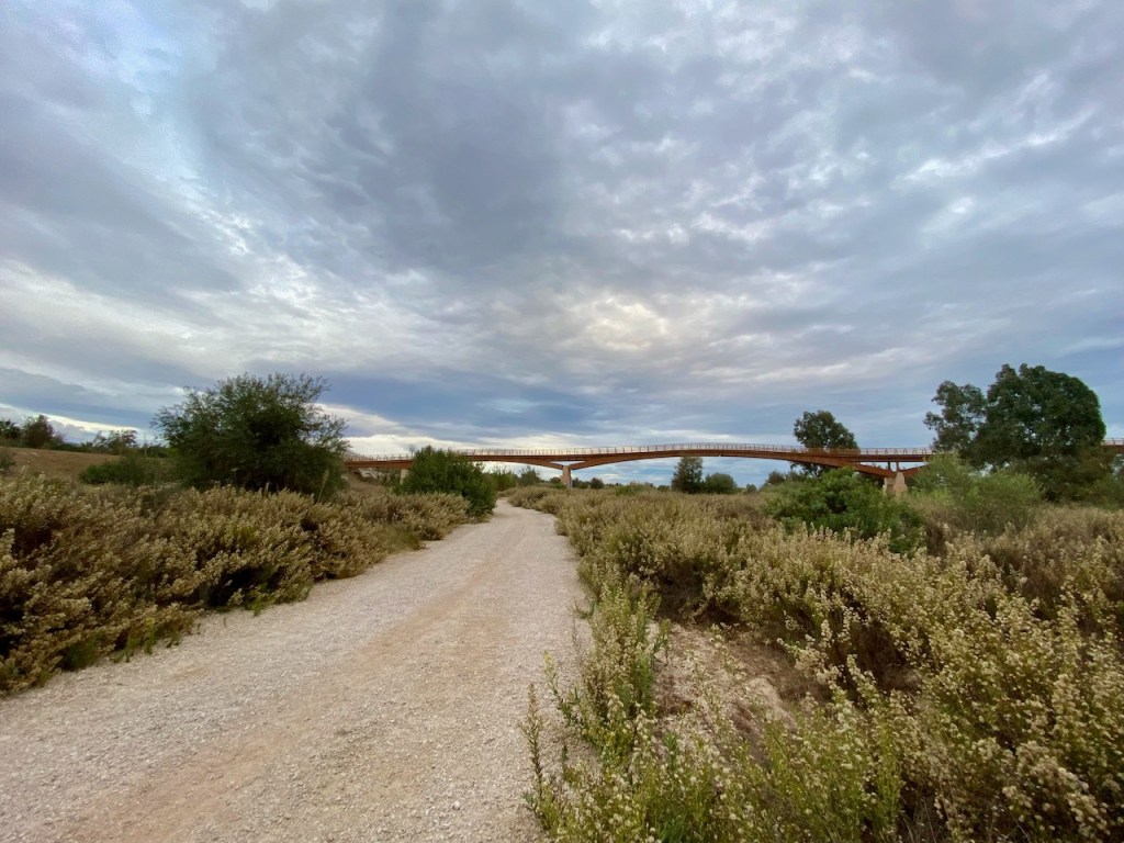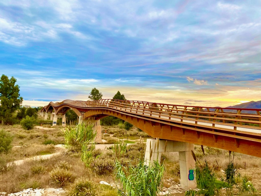 Guadalhorcen Euroopan puisesta kävelysillasta on tarkoitus tulla Senda Litoralin tärkein maamerkki. Tämän luimme Senda Litoralin selostuksista ja näimme myös kuvia hienosta sillasta. Totta kai siitä tuli kohde, jossa piti käydä. Guadalhorcen joen vierellä on muutakin puisto- ja rantamaisemaa ja niillä polkuja.