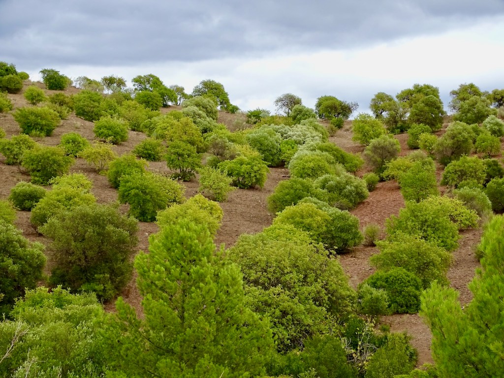 Alas lähtö oli kauniin rinteen kautta. Tällä rinteellä olemme joskus nähneet traktorin työssä. Eli tänne Pizarran näköalapaikalle pääsee myös autolla ajaen, tosin pientä soratietä, mutta siis pääsee, jos on pakko. Me nautimme enemmän tästä noin viiden tunnin ulkoilureitistämme. Eihän tuo siltä kuulosta, että matkaa olisi yhteensä noin 6km ja nousua noin 90 kerrosta, kyllä se pahin hidaste on kamera.