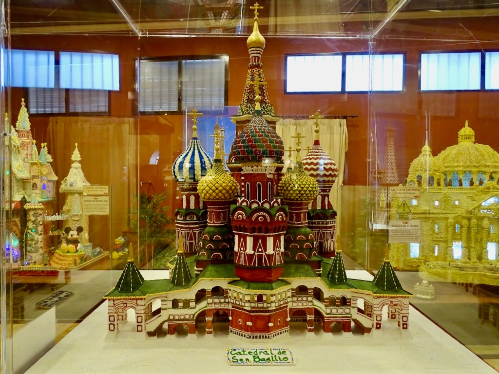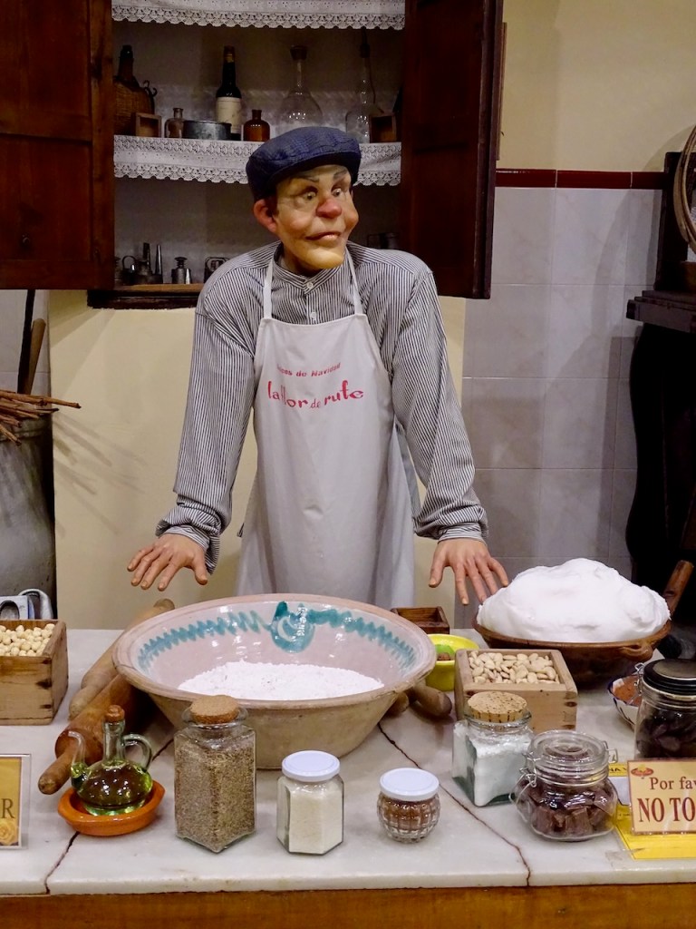Kaikkien näiden ympärille on Rutessa rakennettu hieno museo, näyttely ja myymälä. Uskomatonta, että sokerista rakennetaan pienoismalleja katedraaleista ja tanssijoista, käytetään yli 1500 kg suklaata seimen rakentamiseen ja 130 kg Pipsa Possun patsaaseeen, kuvataan tietäjiä tuomassa anislikööriä Joosefille, Marialle ja Jeesuslapselle ja nähdään koululaistenkin parveilevan kinkkumuseossa. Kiersimme näitä jo toista kertaa ja oli oikein kivaa. Niin kiersi moni muukin. Näimme monta koululaisryhmää ja muitakin turistibussillisia sen lisäksi, että parkkipaikat olivat aika täynnä.