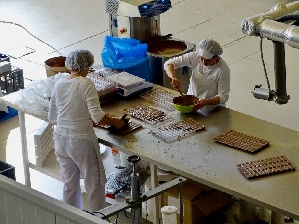 Seimelle kulkiessa nähtiin vähän muutakin. Tehdassali, jossa pakattiin suklaata maailmalle lähetettäväksi. Sen näimme parvelta käsin.