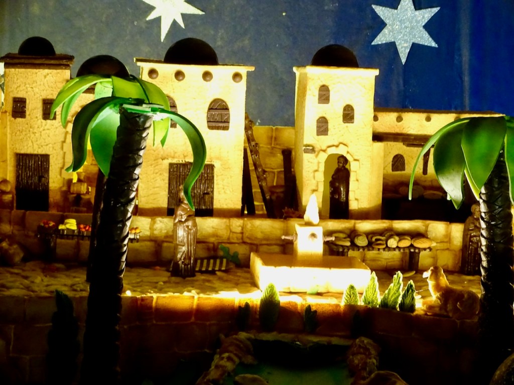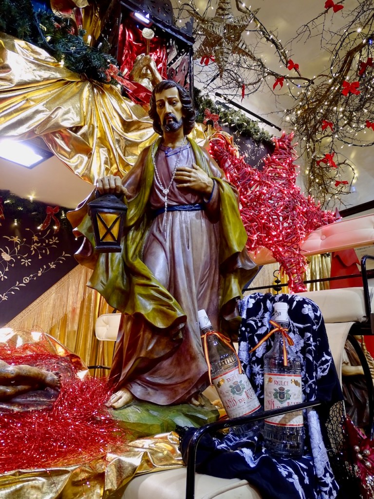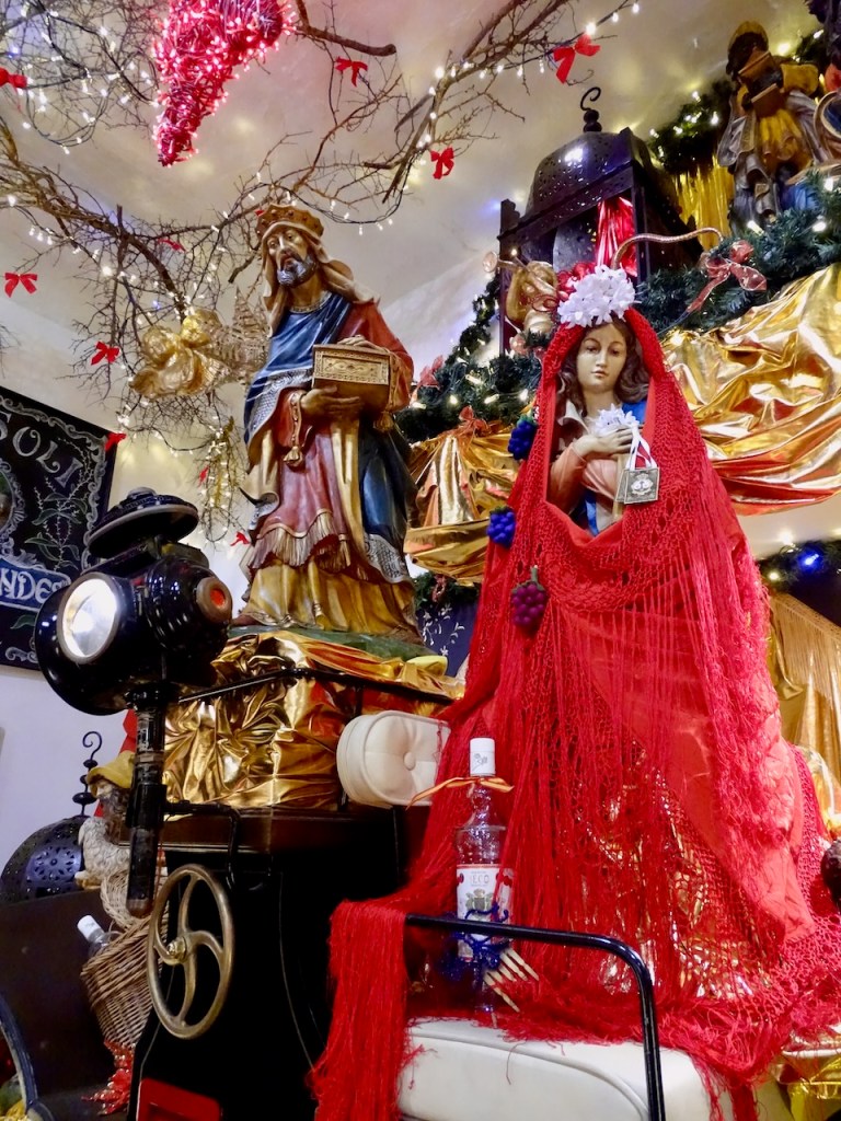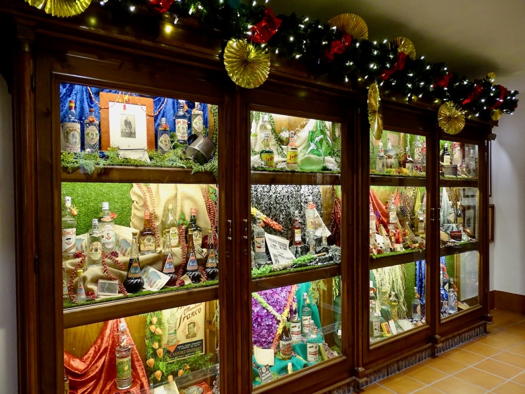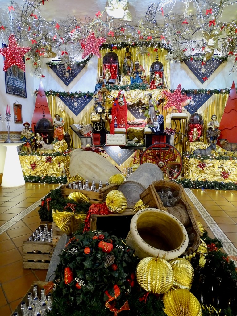 Yllättäen täälläkin oli seimi. Mutta sitä oli sovellettu museon omaan aihepiiriin. Tietäjät toivat anislikööripulloja lahjoiksi Joosefille, Marialle ja myös Jeesusvauvan seimen ääreen.