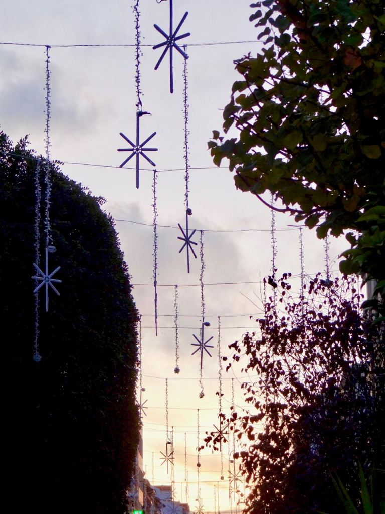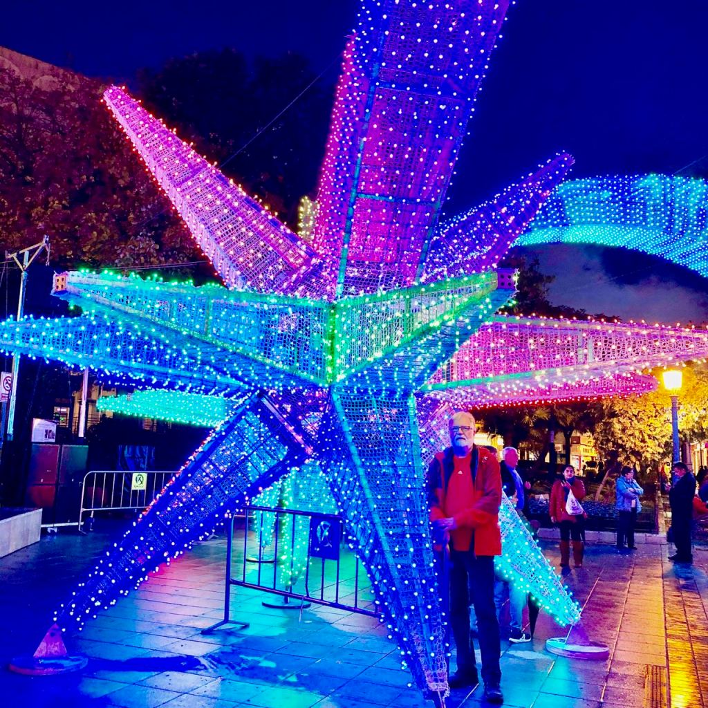 Kaksi suurta tähteä, 18 metriä pitkät, seitsemän metriä korkeat ja kuusi metriä leveät kaaret olivat valojen keskus, joka samalla yhdistää ylemmän ja alemman osan kaupungista. Olimme tulleet tuolta La Matallana kadulta, jolla nyt oli tähtitaivas.