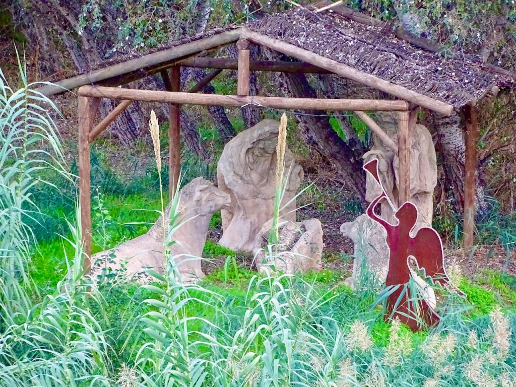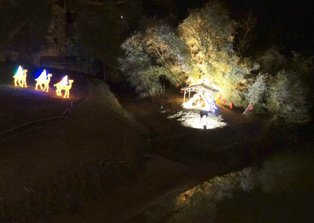 Lopulta olimme Puente de Miragenilillä eli Genil-joen ylittävällä sillalla. Kannatti tulla. Joen rannalla oli valaistu seimi, jonka valot heijastuivat jokeen.