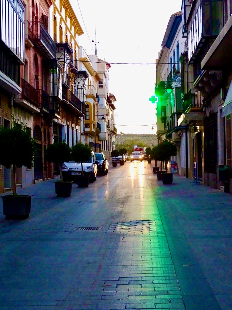 Pieni pettymys asia silloin 2022 oli, mutta onhan Puente Genilissä nyt muutakin nähtävää. Ylös ja alas kulkevat kadut ja niiden näkymät ovat yksi niistä. Kävelylenkkimme oli kuitenkin virkistävä, vaikka lähes ainoa näyttävä valo olikin vain apteekin risti. Ja tietysti ne pikkukaduilla vilkkaasti kulkevat autot.