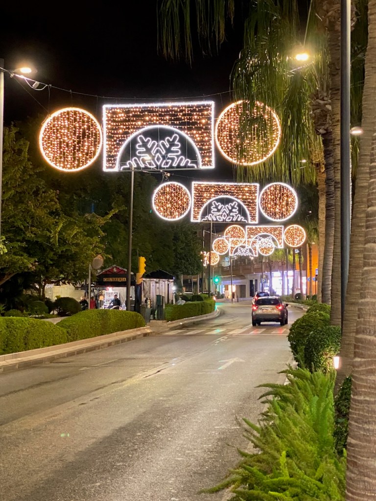 Benalmadenaa harvemmin mainitaan jouluvalojen yhteydessä, mutta kyllä sielläkin on paljon katuja, joissa on näyttävät valot.