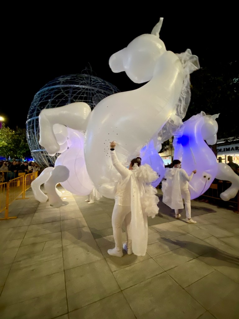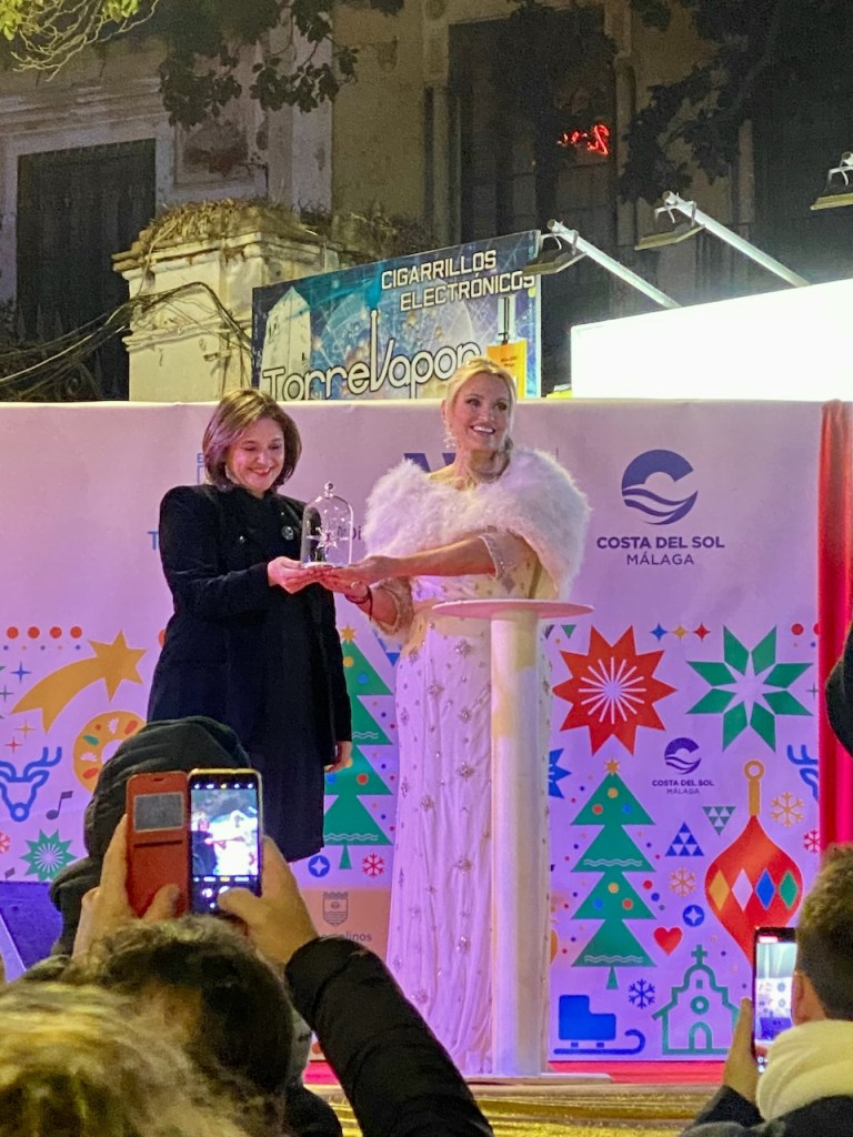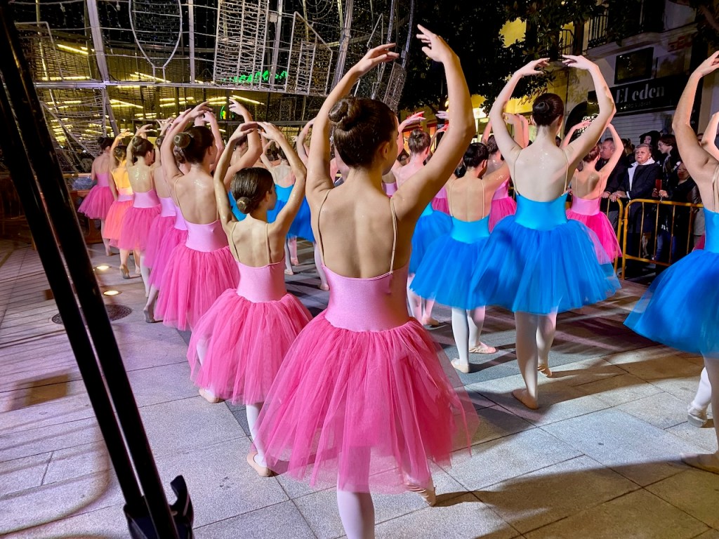 Torremolinosissakin valot sytytetään näyttävän shown ja musiikin mukana. Mukana on sekä muusikkoja että lapsia ja nuoria. Aiemmin olemme nähneet esimerkiksi lasten ja nuorten rullaluisteluesityksiä, mutta tänä vuonna näytös oli balettitanssi. Pikkuisen näimme tanssivien tyttöjen olevan vähän viluisia ennen näytöstä, mutta liikkuessa vilu varmasti katosi.
