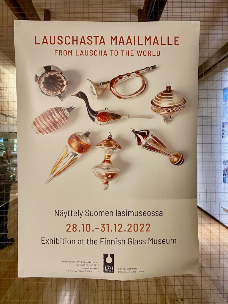 Ehdit vielä: Näyttely on esillä 31.12.2022 asti. Jos et ehdi, käy itse Thüringenissä. Siellä on muitakin joulukoristeisiin keskittyviä liikkeitä ja museoita. Niistä voit lukea meidän kokemuksistamme näiden muutaman Riihimäen lasin näyttelystä otetun kuvan jälkeen olevasta linkistä.