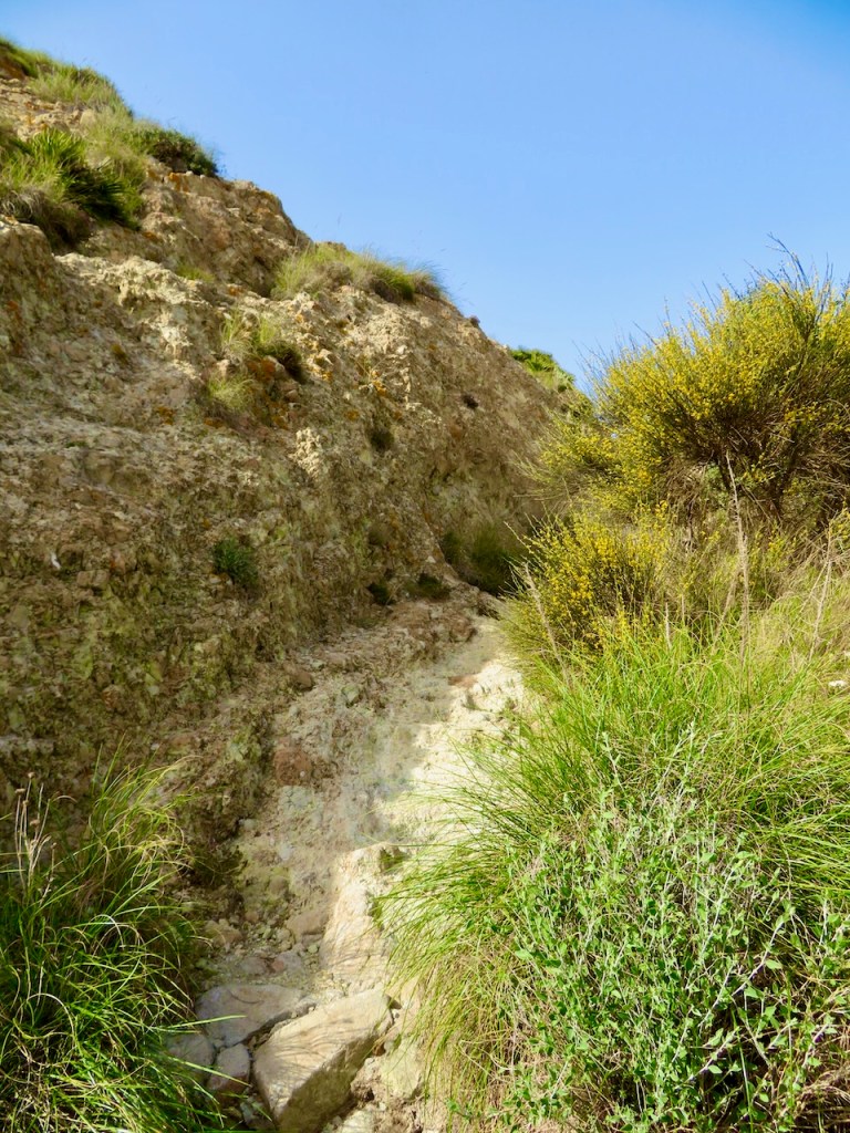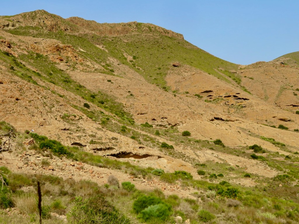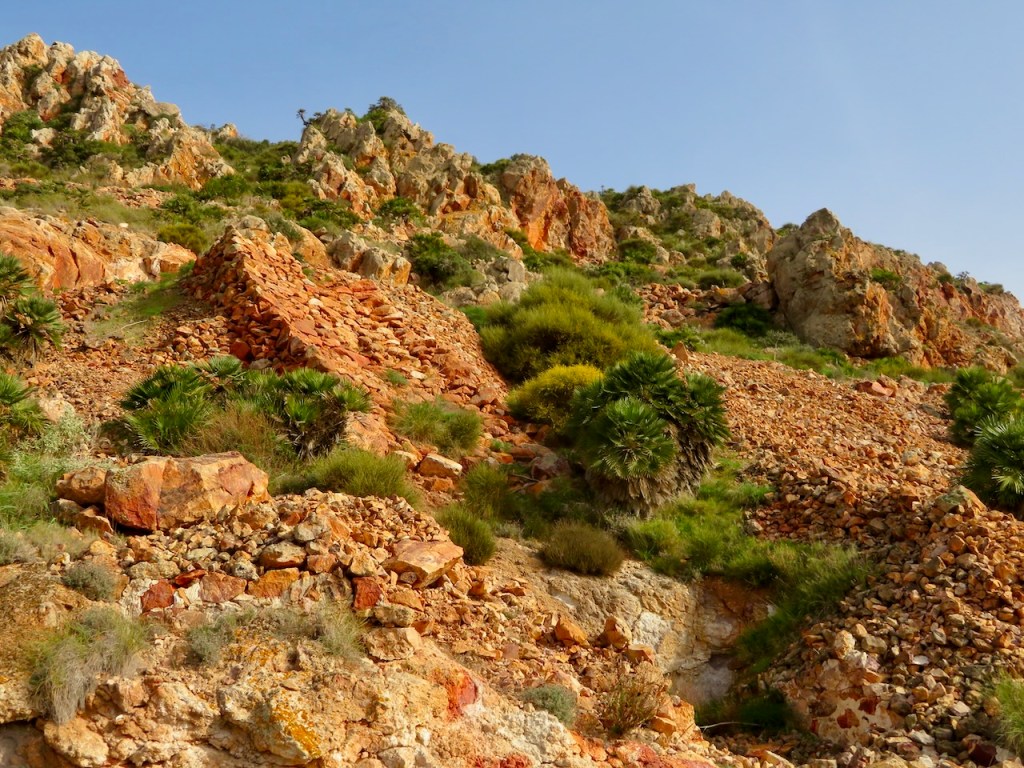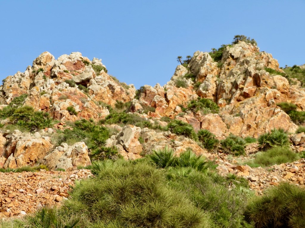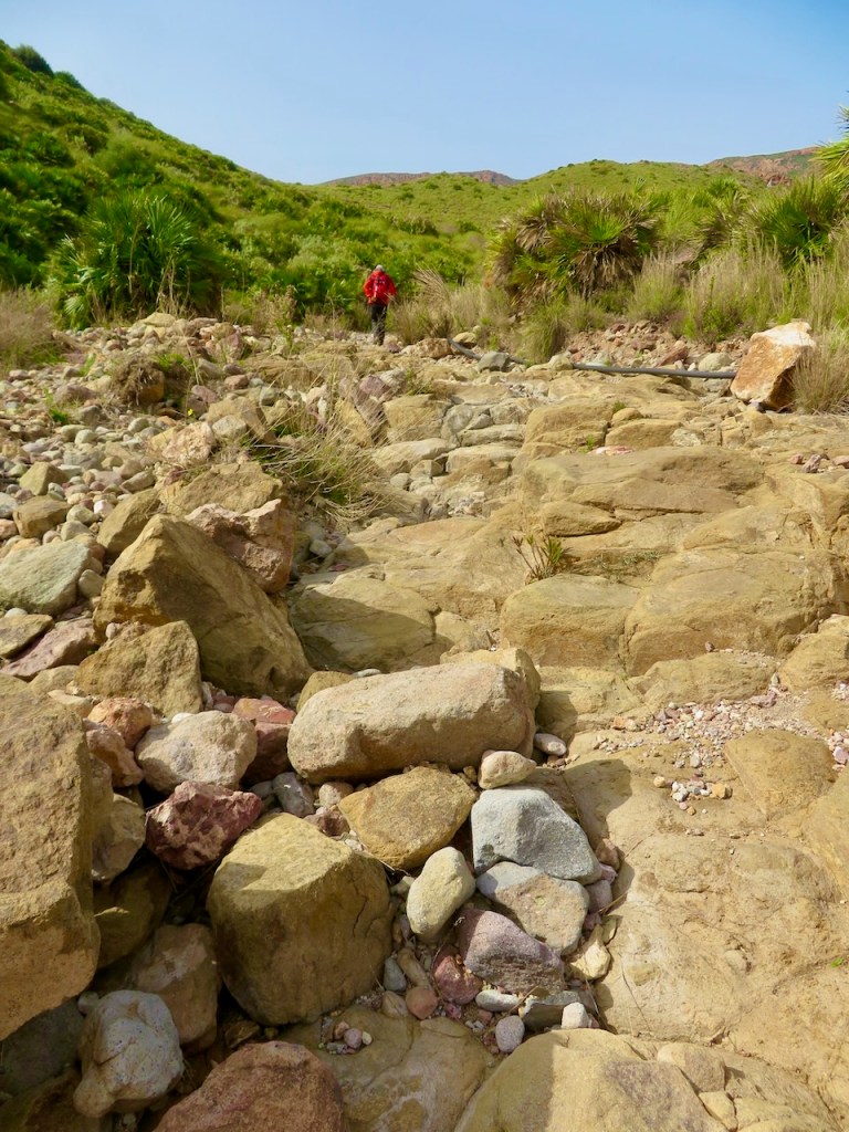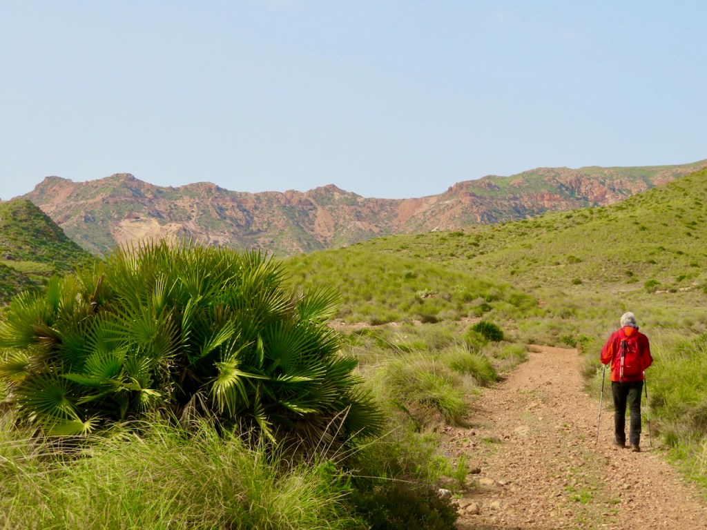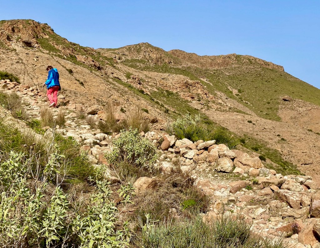 Polku alkaa Rodalquilarin laaksosta, joka on vanhan tulivuoren kraateri, jonka Sierra de Cabo de erottaa merestä. Luonnonpuiston nimi on Gata. Olemme Andalusian äärimmäisessä kaakkoisosassa ja kuivuus saa aikaan arokasvillisuutta muistuttavia maisemia, On keltaisena kukkivia ruohoja ja kaikkein yleisin on pensasmainen kääpiöpalmu, joka on tyypillinen kasvi vähäravinteisilla alueilla. Rinteillä on myös terasseja, joilla viljellään. Näimmepä kaikesta huolimatta joitain mantelipuitakin.