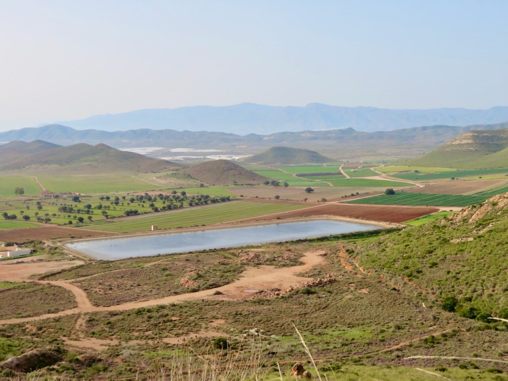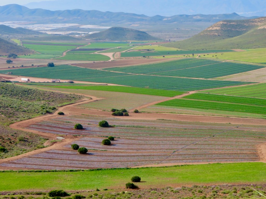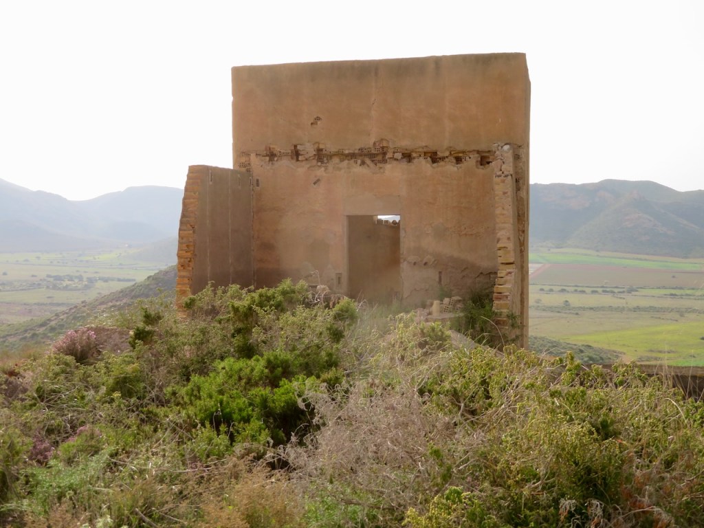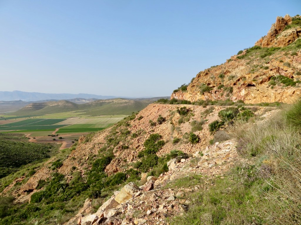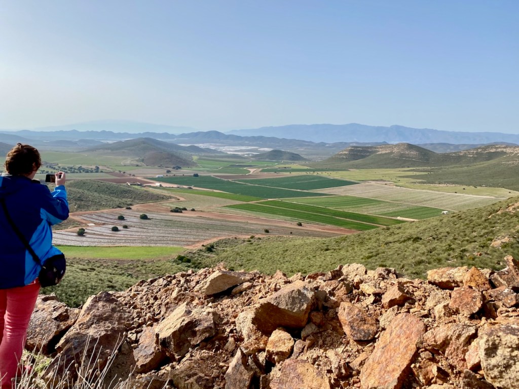 Jyrkän kiipeämisen ponnistelut mäkeä ylös palkitaan nopeasti kauniilla panoraamanäkymillä. Niiden taustalla näkkyvät jopa Sierra Nevadan lumiset rinteet ja huiput. Mutta näiden vuorten edessä näemme yhen Gatan luonnonpuiston historiallisimmista sisätasangoista, Campos del Cortijo del Frailen. Maisemaa hallitsevat viljelykset ja katetut kasvisviljelmät, joita Almerian maakunnassa on yli 400 neliökilometriä. Almeria on kasvisten viljelykeskus, tomaatit ovat niistä erityisin.