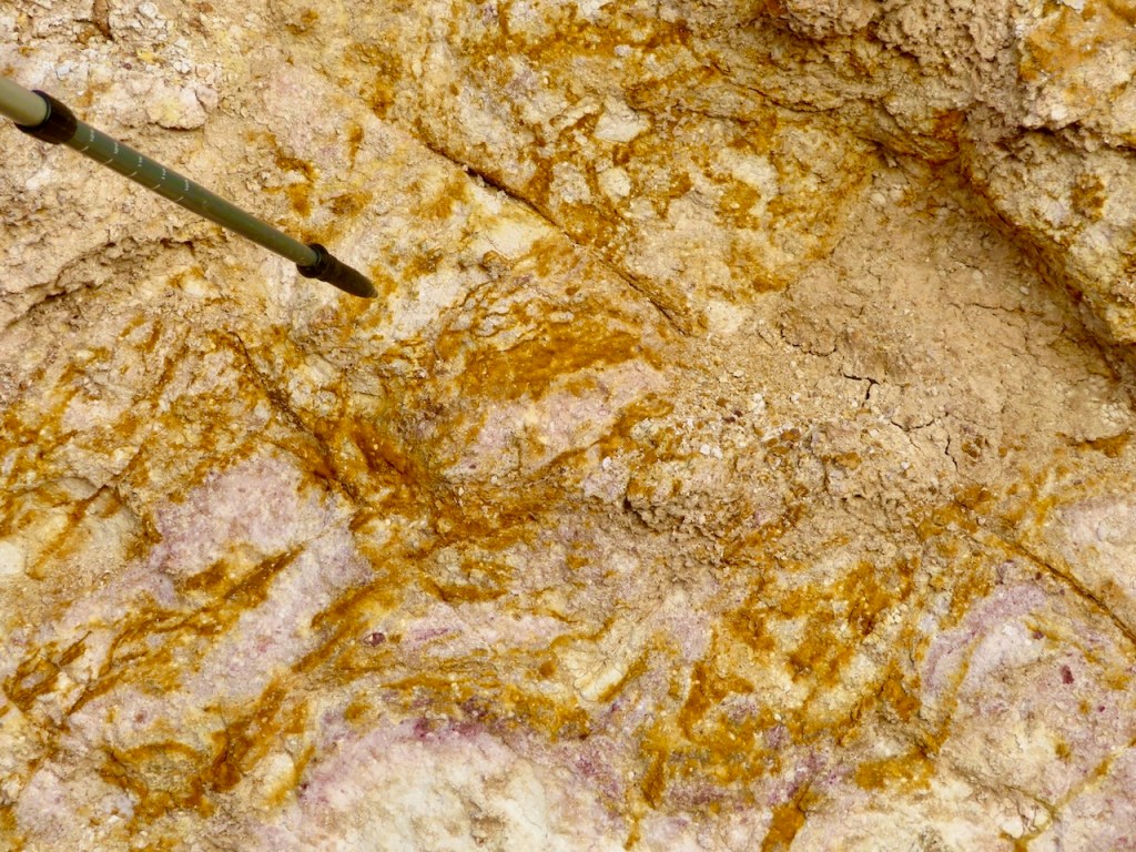 Jatkamme polkuamme panoraamanäkymän jälkeen laskeutuen Rodalquilarin kultakaivoksen louhintavyöhykkeelle. Se ja siitä luopuminen näkyy monella tavalla. Aivan huikeinta katsottavaa ovat louhitut värikkäät kalliot, joiden keskellä polku kulkee.