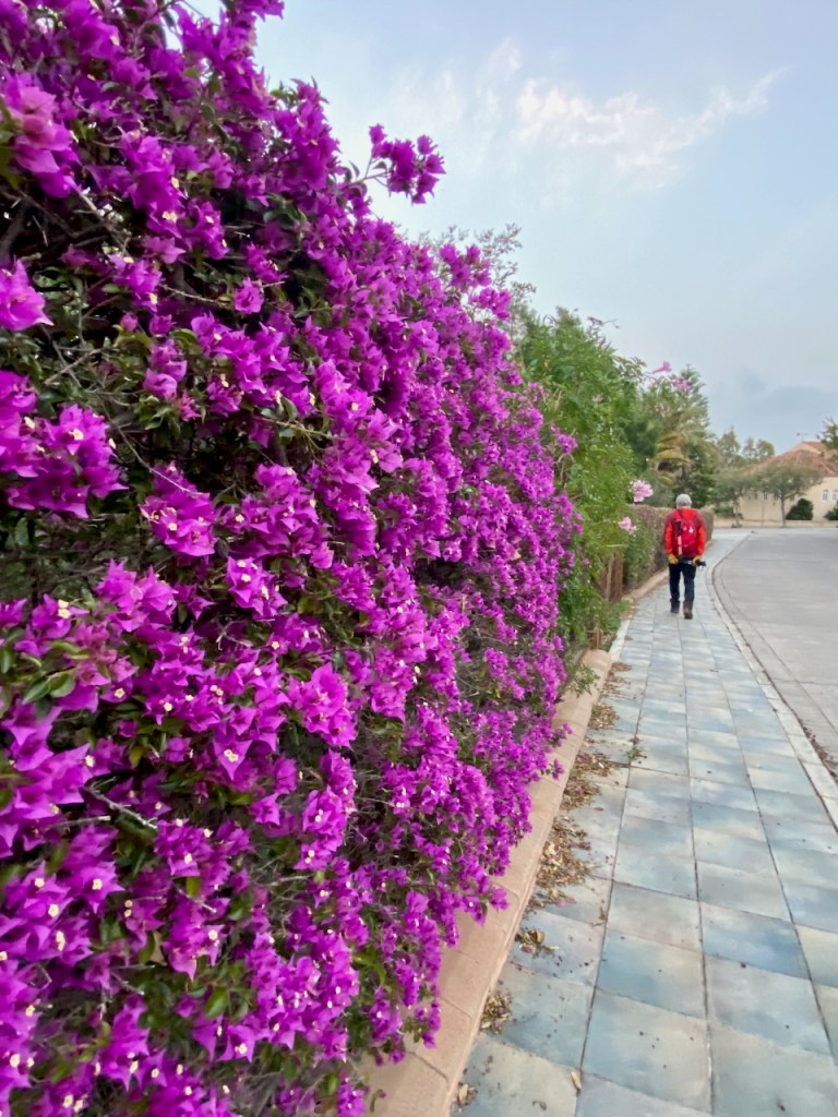 Kävelimme kukkien reunustamaa katua polun alkuun.