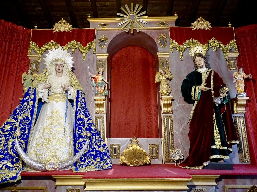 Viimeksi käydessämme San Salvadorin kirkkokin oli kiinni. Joskus on vaikea ymmärtää tätä espanjalaista siesta-aikataulua. Turisti-info ja nähtävyydet voivat olla kiinni juuri silloin, kun turistille aurinko paistaa ja turisti on liikkeellä. Nyt olimme liikkeellä niin, että se oli auki. Katolinen kirkko, tunnelma on aina koskettava. Ja Marian ja Kristuksen kuvat esillä.