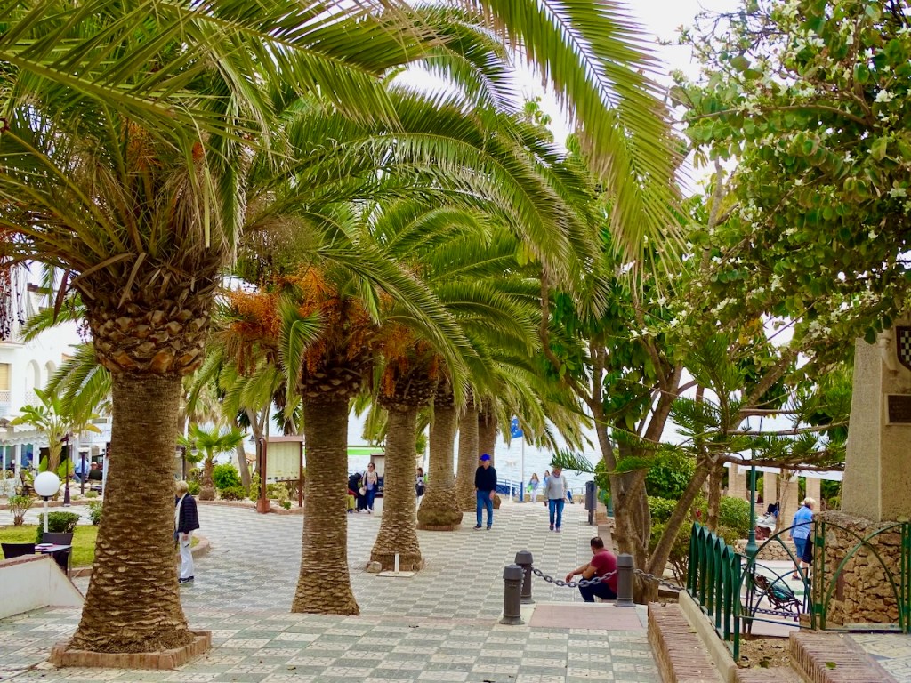 Ihan pakollinen nähtävyys on Balcon de Europa, meren ylle kurottava aukio, josta on hienot näkymät rannikolle ja merelle. Voisimmepa palata takaisin aukiolle joskus ihailemaan auringonlaskua. Nyt katselimme vähän huolestuneina pilvien liikkeitä vuorenrinteillä ja tuulikin tuntui sen verran, että se vei vähän fiilistä.