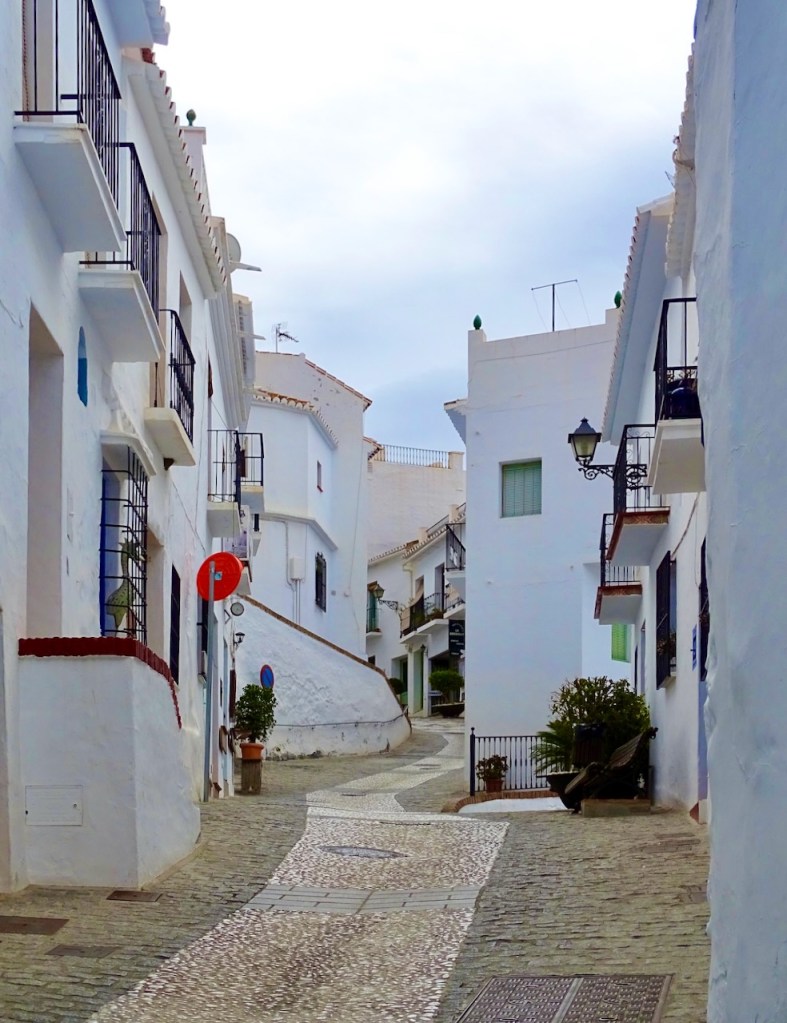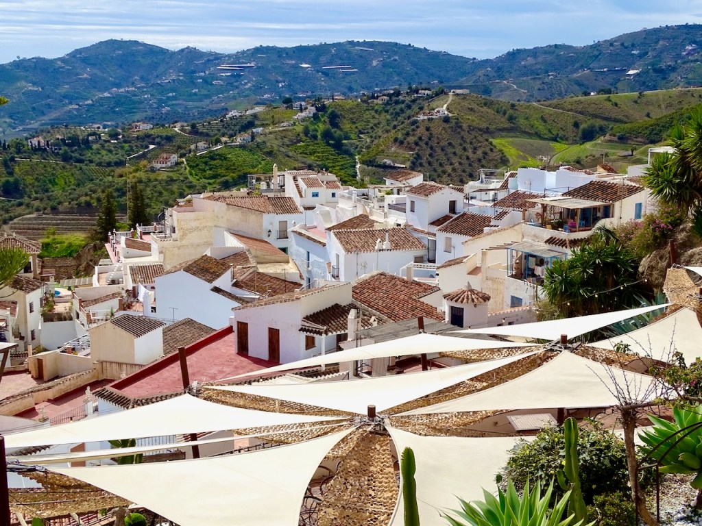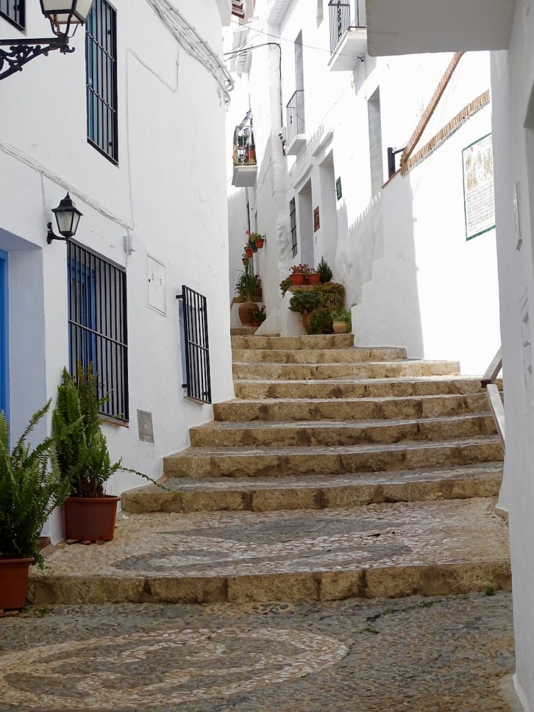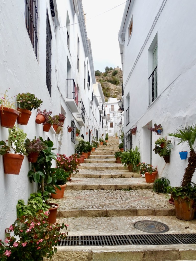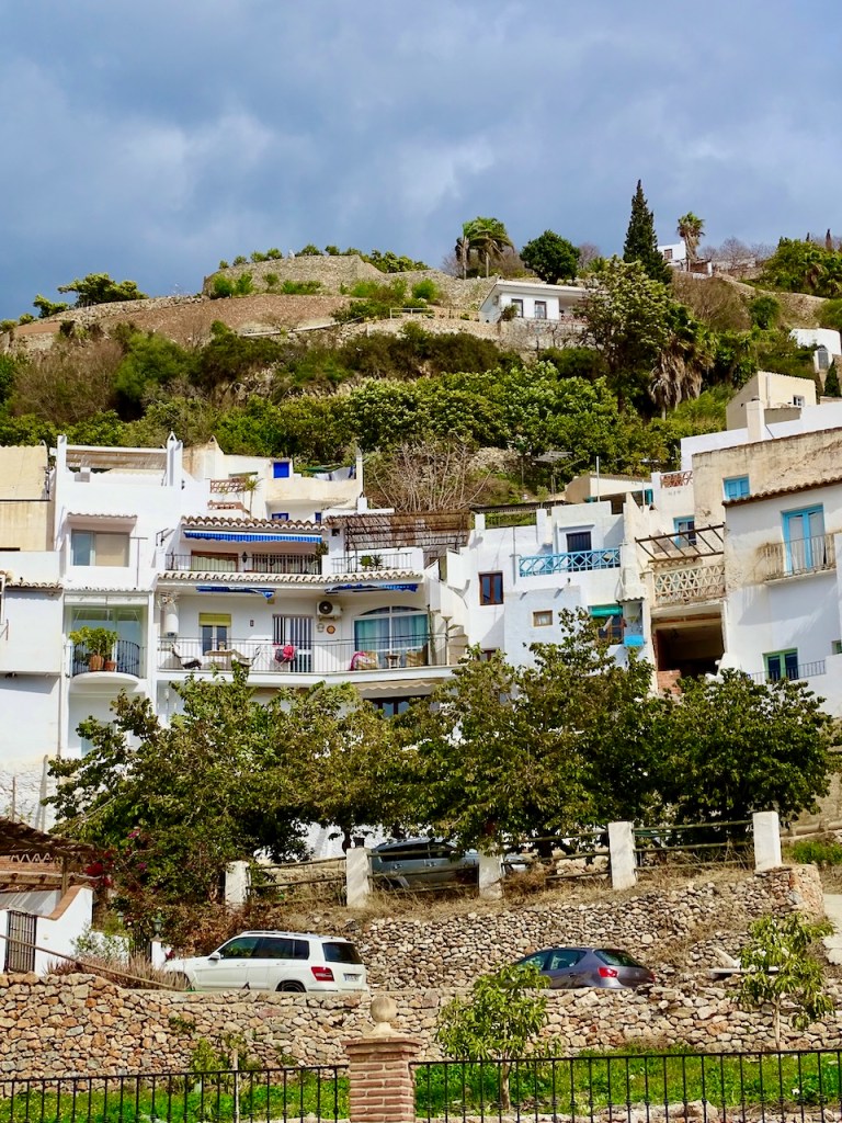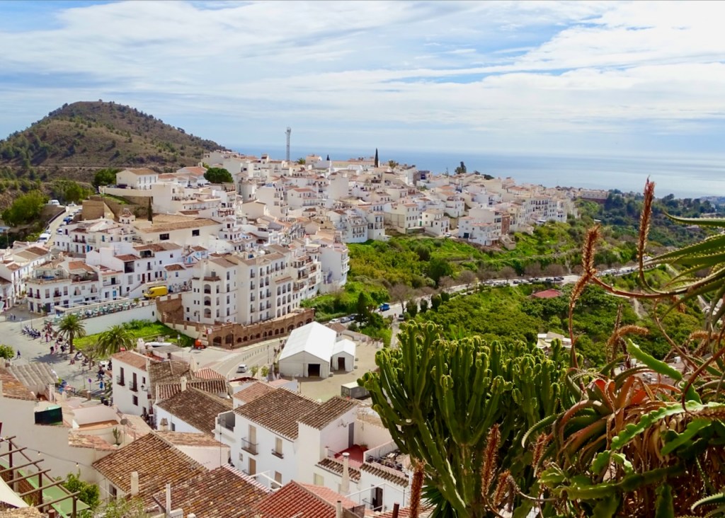 Frigiliana on moneen kertaan nimetty Andalusian kauneimmaksi valkoiseksi kyläksi. Olen aika valmis olemaan samaa mieltä, vaikka toki kauniita kyliä on paljon muitakin. Siitä en ole ihan samaa mieltä, että kannattaa myös kiivetä sen korkeimmalle mäelle, jossa joskus on sijainnut linna, nykyisin tuskin edes raunioita. Polku on kovin kivinen, siellä törmää aaseihin, joiden puremista varoitetaan, ja eksyin kunnolla, kun etsin toista tietä alas. Mutta kaunis paikka!